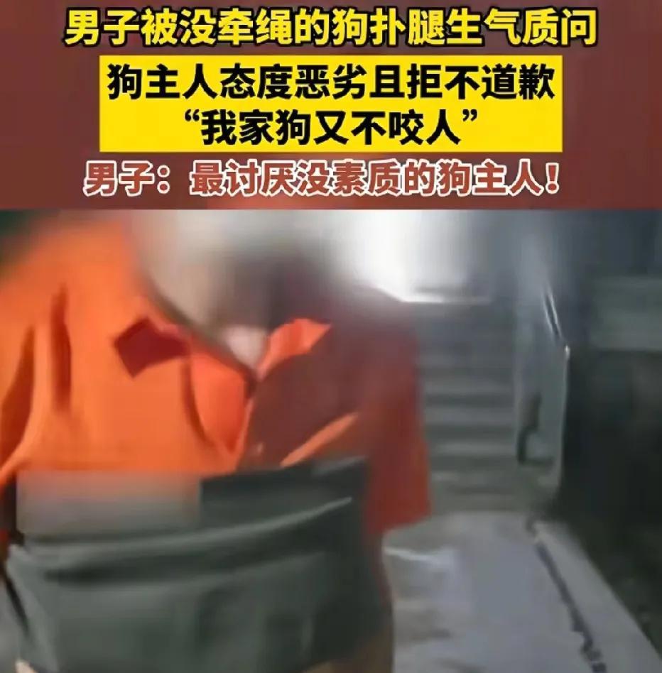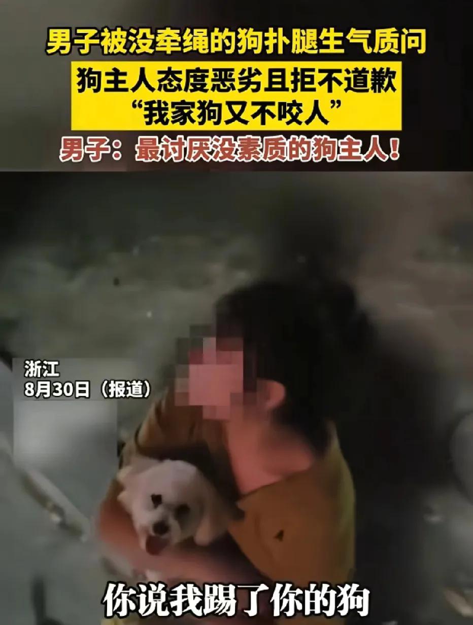 浙江,女子养了一条狗,但她不给它牵绳子,就去小区楼下遛狗。狗向一男子扑去,男子吓
