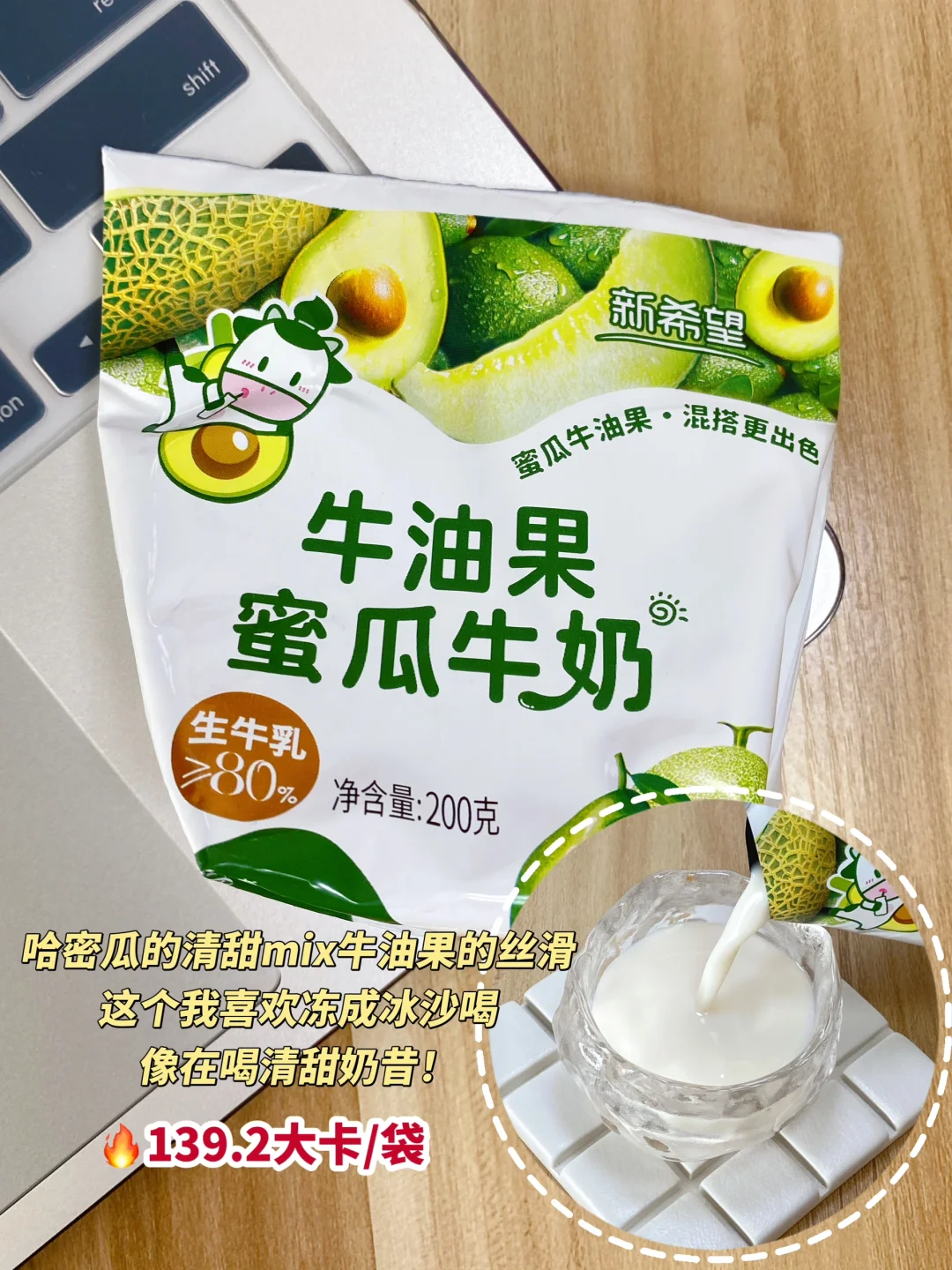 🥑牛油果蜜瓜牛奶:哈密瓜的清甜mix牛油果的丝滑,这个我喜欢冻成冰沙喝,像在喝清甜奶昔!