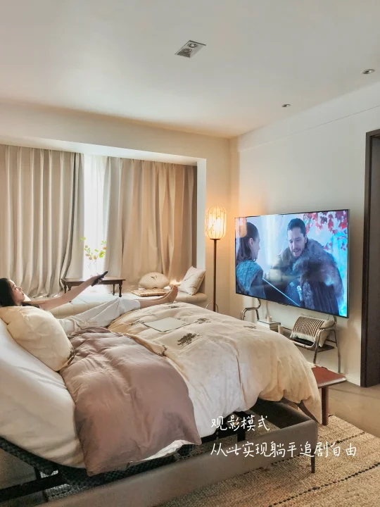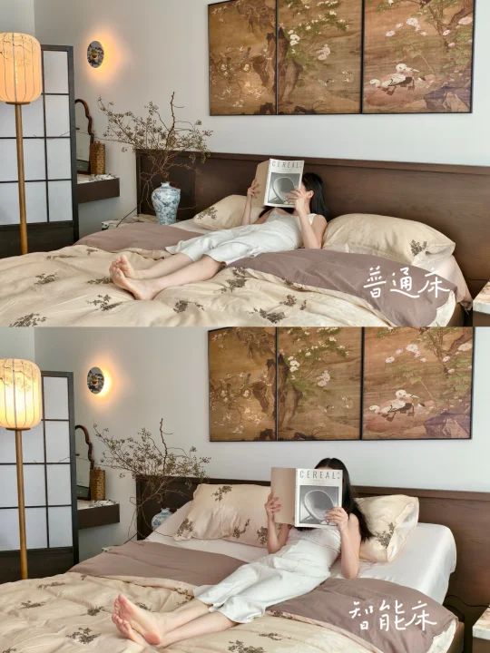 像我这样爱观影的人,只需轻触「观影模式」整张床便轻柔托起背部,首尾缓缓抬高,腰部获得稳稳支撑,角度恰到好处,追剧看书,尽是从容,丝毫感受不到累.