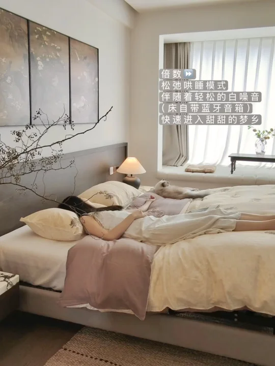 钟爱的还有那「哄睡模式」 做自媒体难免在电脑前一坐就是整日,从四种模式中选择“久坐丽人”设定,床头床尾如波浪般轻柔起伏,搭配自带的蓝牙音响传来的海浪白噪音,宛如一叶扁舟漾于夜海,慵懒、松弛,渐渐入梦.