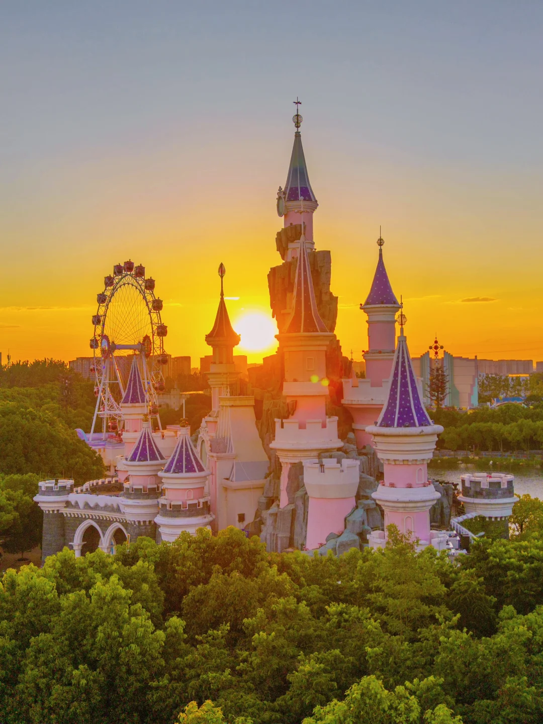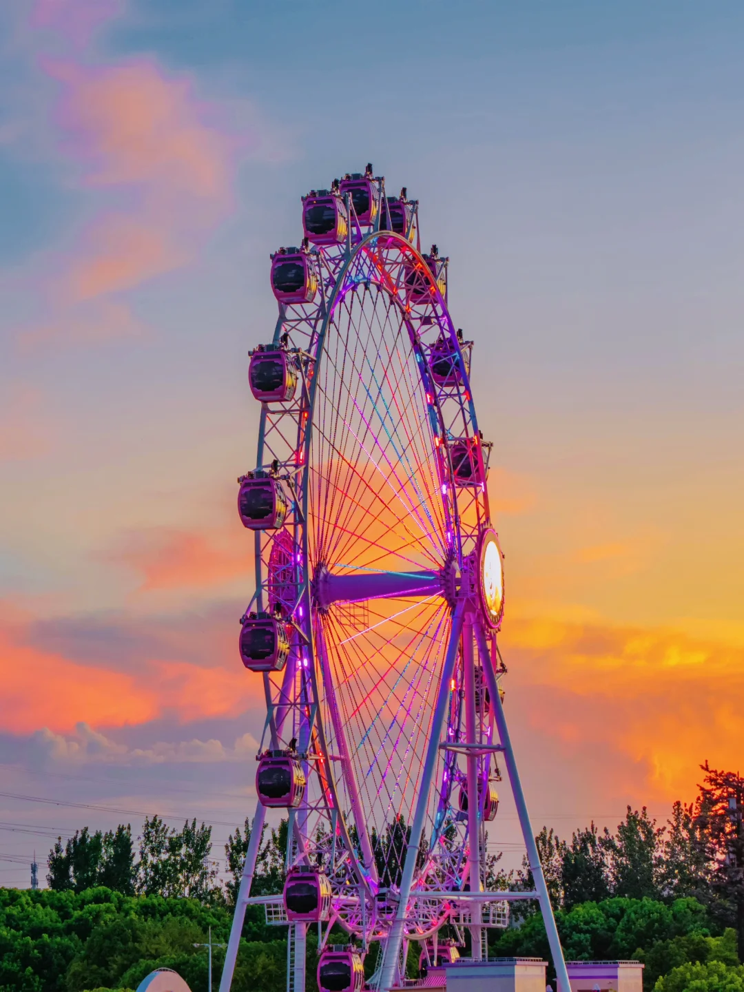 ✔️傍晚时刻可去室外玩些项目,其中坐极速飞车还能看到落日还有粉色晚霞,真的浪漫疯了~