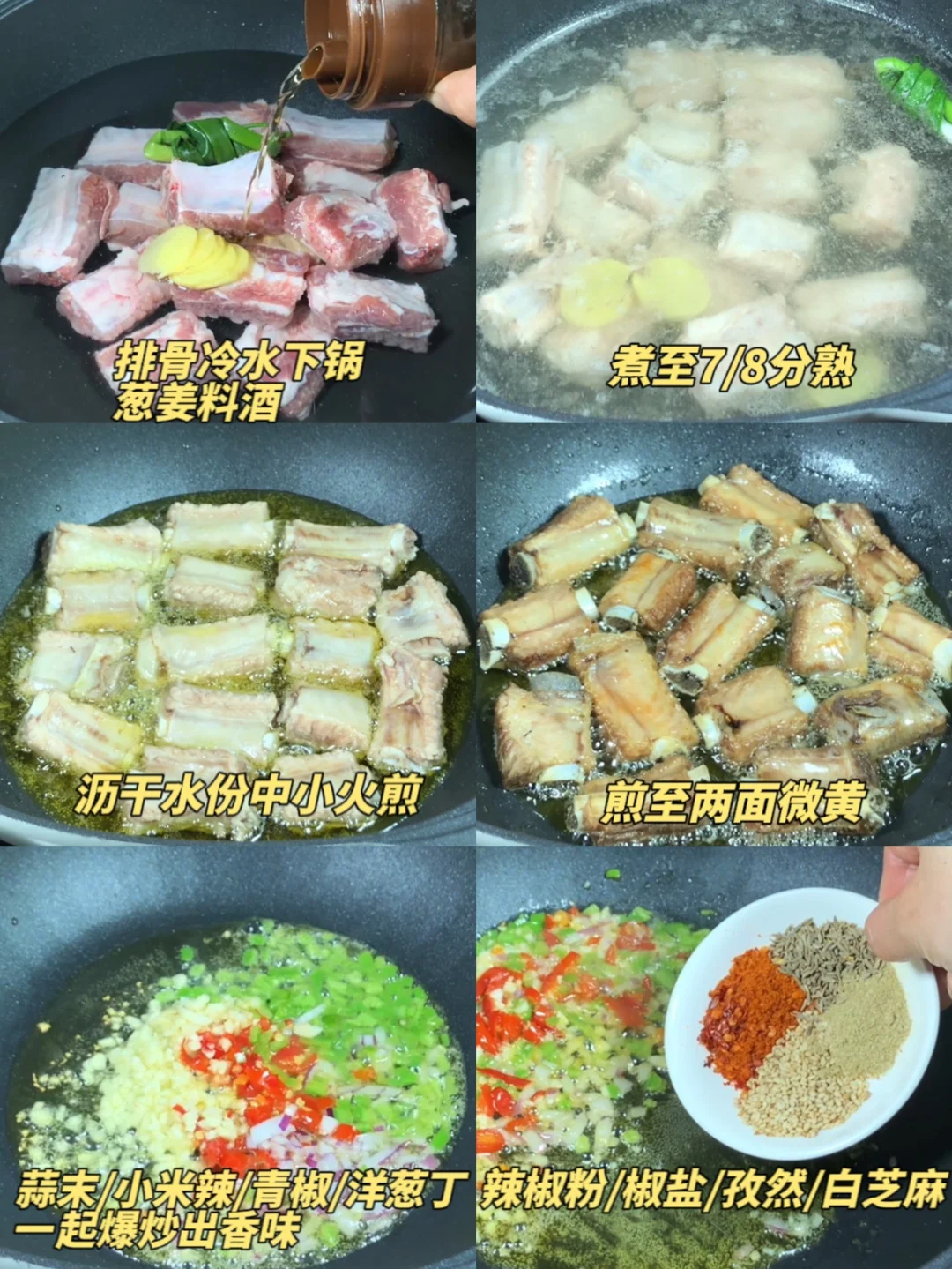 🍀🍀做法:1️⃣排骨冷水下锅,加葱姜和料酒煮至八分熟,捞出沥干水份