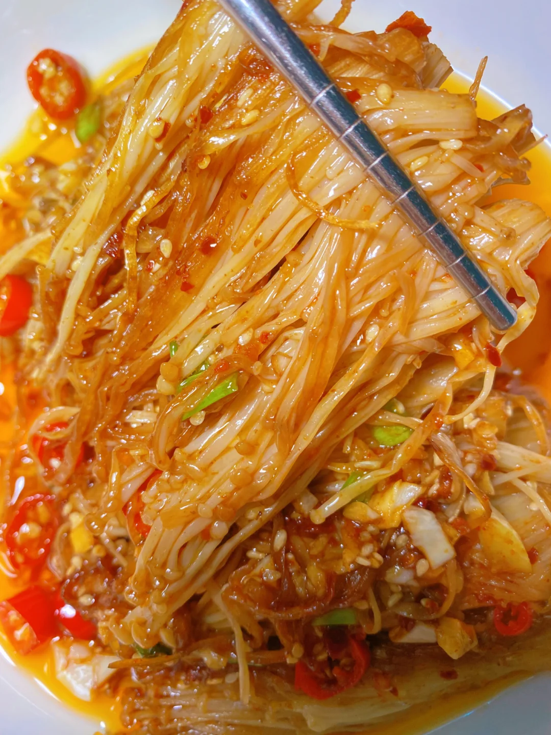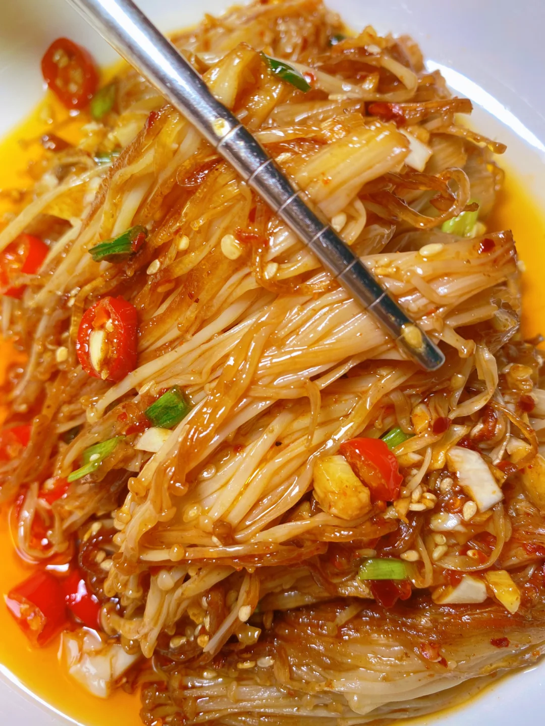 1⃣️ 调料汁:蒜末、葱花、小米辣、辣椒面、孜然粉、白芝麻 + 热油炝香 + 3勺生抽 + 1勺蚝油+少许食盐 +少许白砂糖,拌匀备用