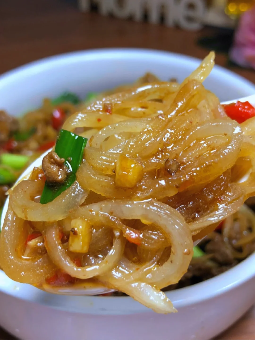 今天买了10💰牛肉,1💰白萝卜,做了一道我们江西人都爱吃的萝卜丝炒牛肉,香辣下饭,老公说:真的太下饭了[哭惹R]