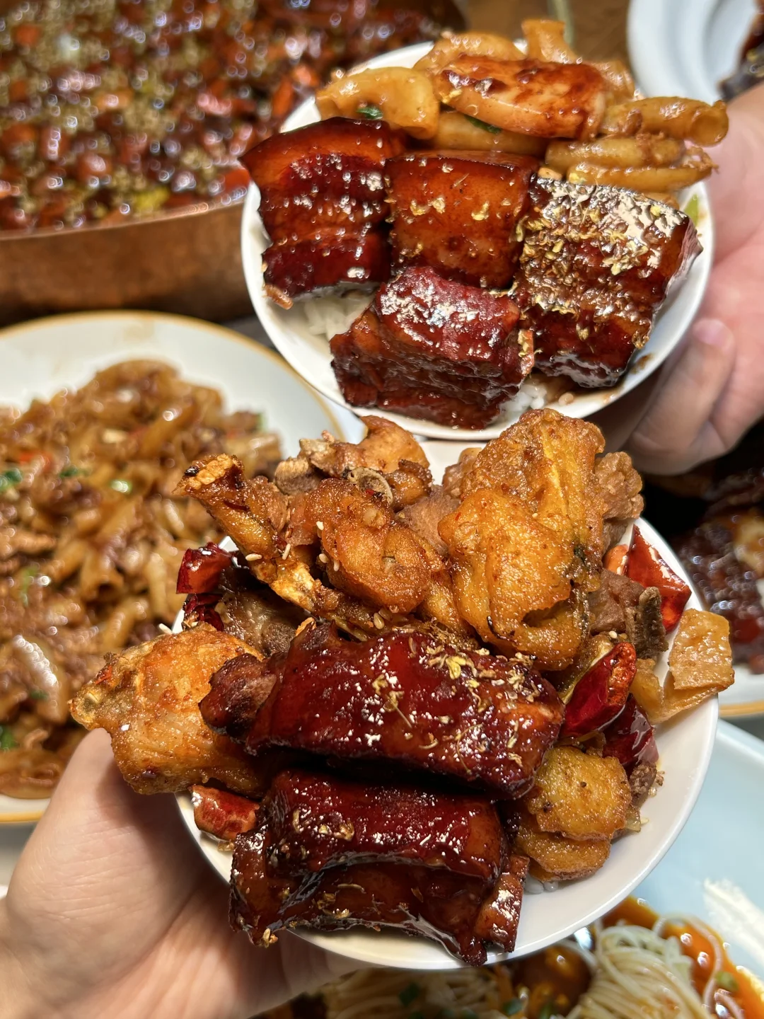 还有辣子鸡、水果泡菜、芝麻鸡、香辣通心粉、耗儿粉烧鸭等菜品口味都不错呢😋