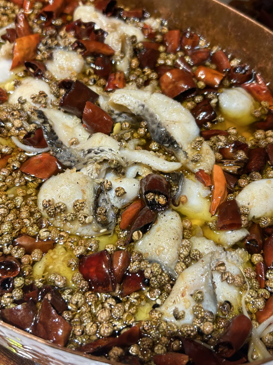 现泼热油好震撼!仪式感满满,鱼肉鲜嫩多汁,鲜香麻辣融为一体,真的好好吃啊!要趁热吃喔!!