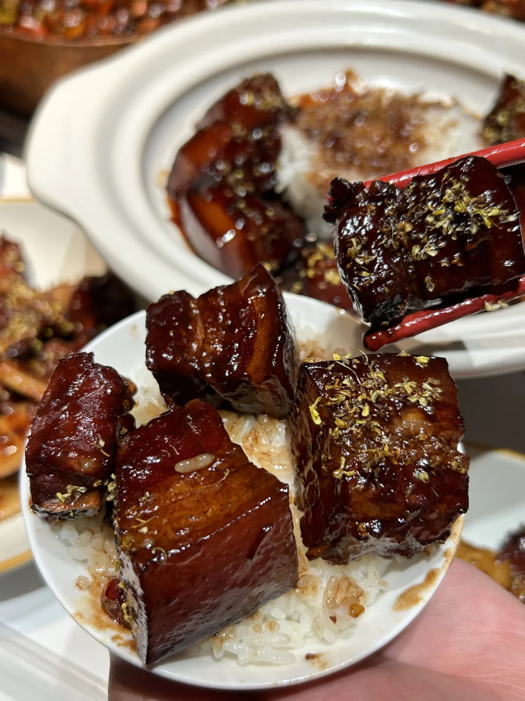 看着就很有食欲,红烧肉炖的软烂甜糯,撒上桂花搭配酱汁也敲浓郁😋,拌饭嘎嘎香!!