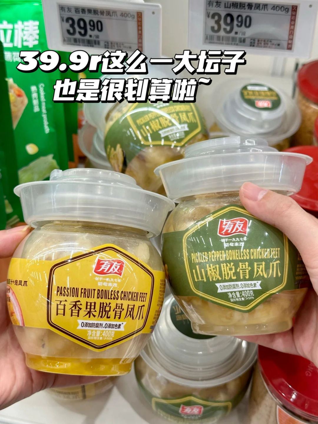 妹妹找到了零食货架上有友新出的坛装脱骨凤爪