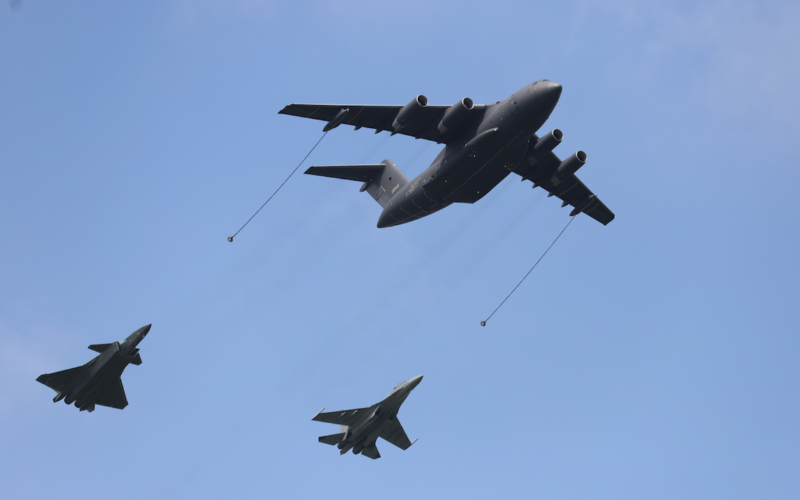 过去,中国虽拥有隐身战机和轰炸机,但受限于空中加油体系不足,作战半径、持续滞空能力大打折扣。YY-20作为以Y-20运输机平台改装而来的空中加油机,在2022年底开始进入实战化训练,仅数年间便形成了初具规模的编队能力。此次阅兵中,它被安排编队居中,就凸显其在实际作战体系中的核心地位。YY-20的强项在于它服务于一个高度一体化、不断完善中的国产作战体系——它可以同时为J-20、J-16、J-10C、轰-6N、空警-500等多型国产飞机加油,并已在中埃联合演习中为外军米格-29M战机提供支援。这种平台兼容性与体系融合性,正是当前空军力图塑造的统一接口、统一后勤作战逻辑的体现,尤其在第一与第二岛链之间展开空中力量时,YY-20的出现直接影响了出航半径与持续作战能力的计算方式。