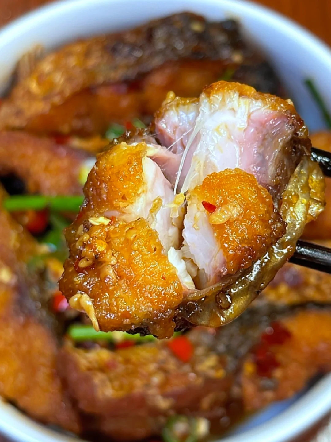 小贴士❣️:炸鱼不要低温炸,以免贱油烫伤,鱼先炸后炒,口感赞爆👍爱吃鱼的姐妹一定做来尝尝~
