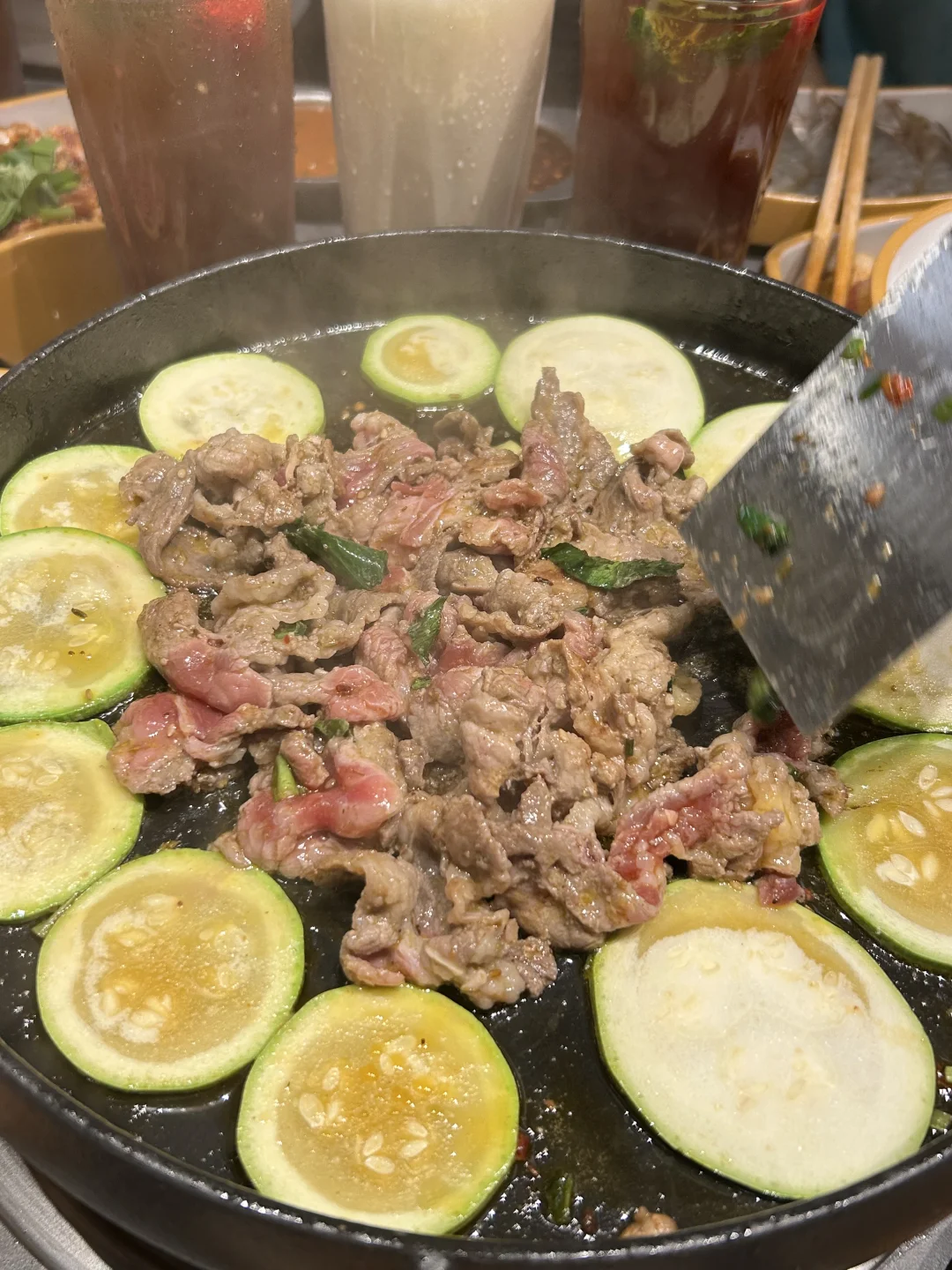 这样下单很快一会烤肉和菜品就陆续上齐了