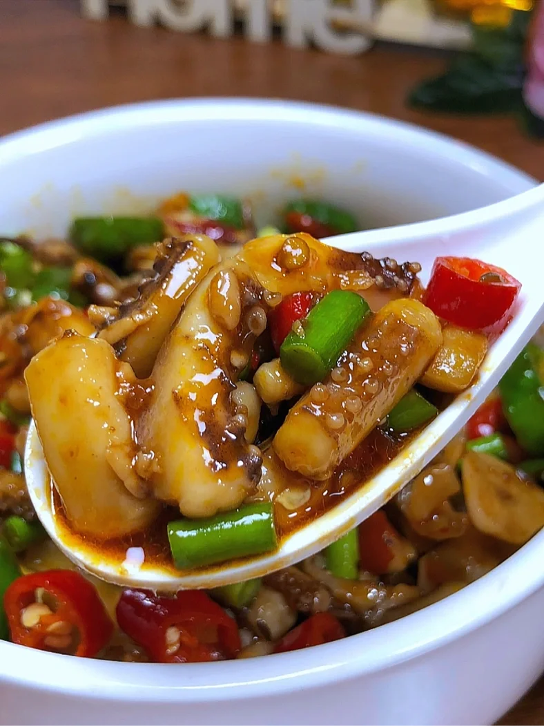 好喜欢鱿鱼须的嚼劲口感,越嚼越香🤭老公说:味道特别棒!配点小酒真的是绝绝子
