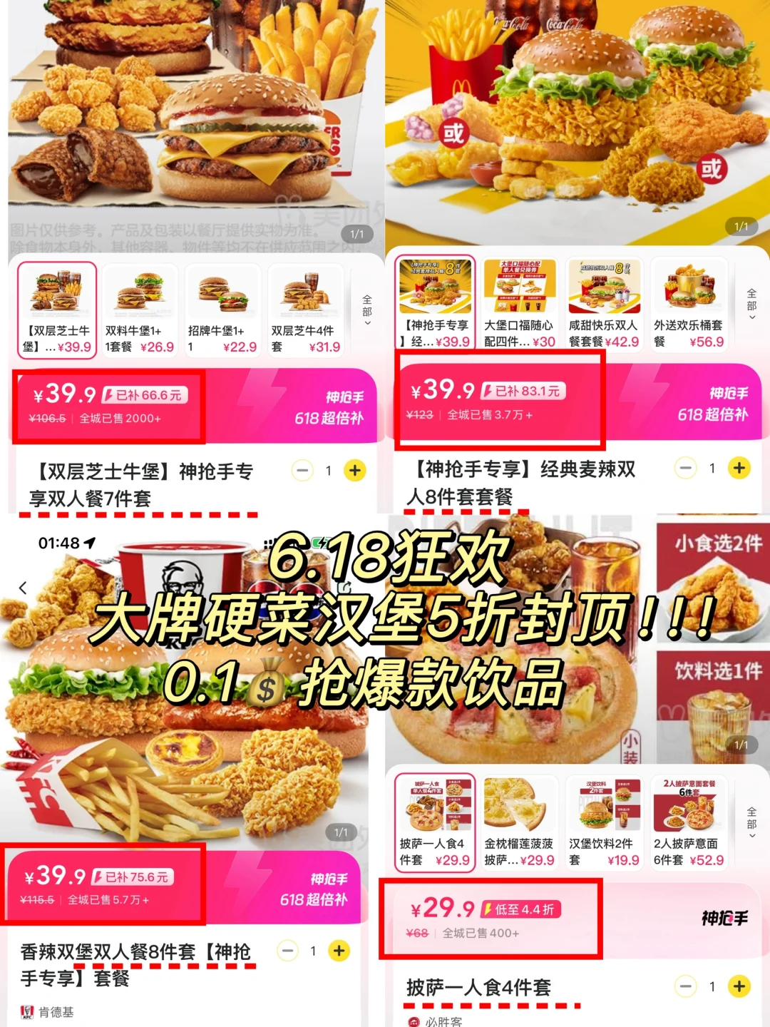 6.18狂欢,大牌硬菜5折封顶!日常0.1枪爆款饮品!超级划算!快冲呀