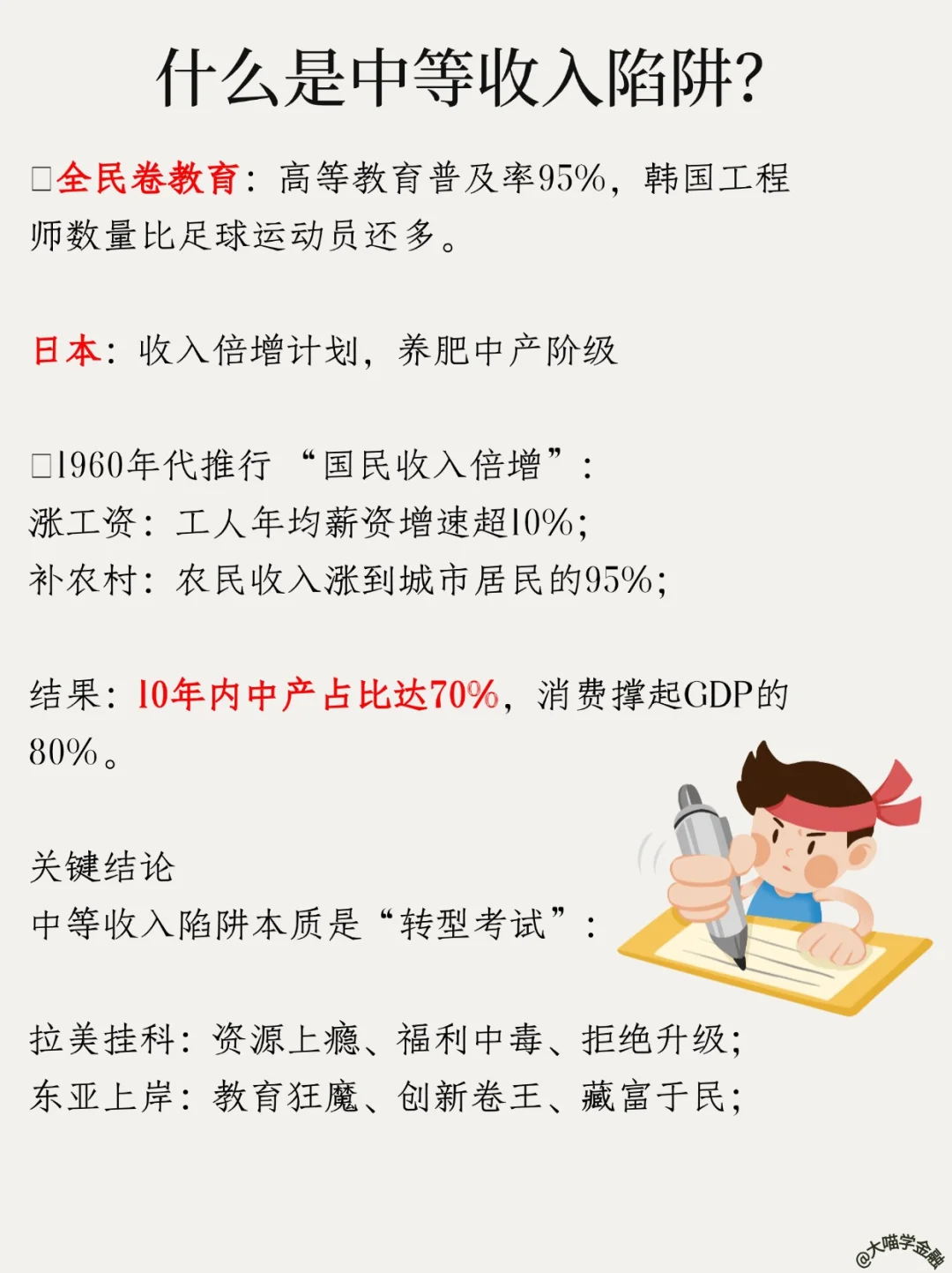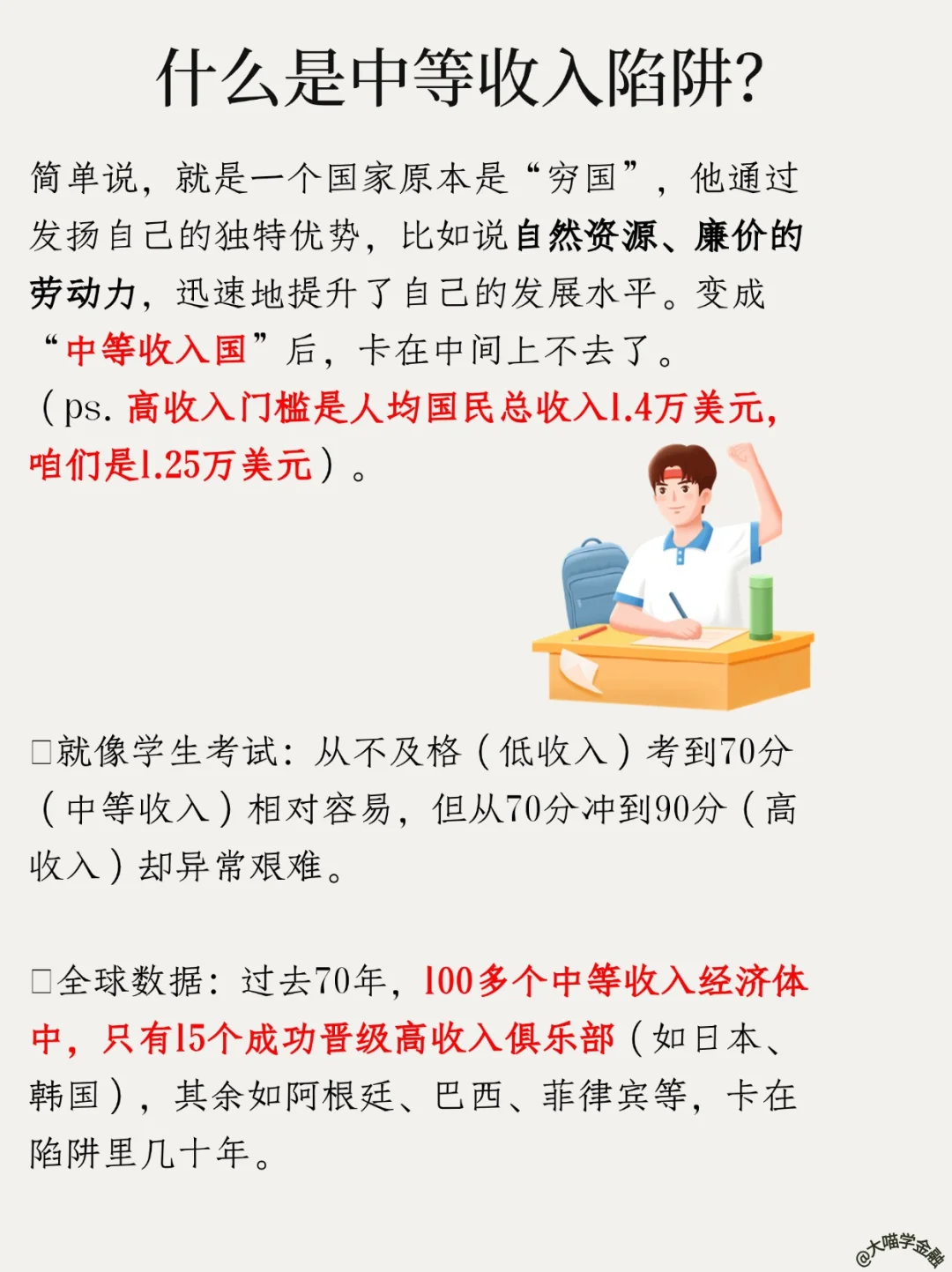 残酷现实:过去70年,100+ 中等收入经济体中,仅15个晋级成功(日韩上岸,阿根廷/巴西/菲律宾躺坑几十年)
