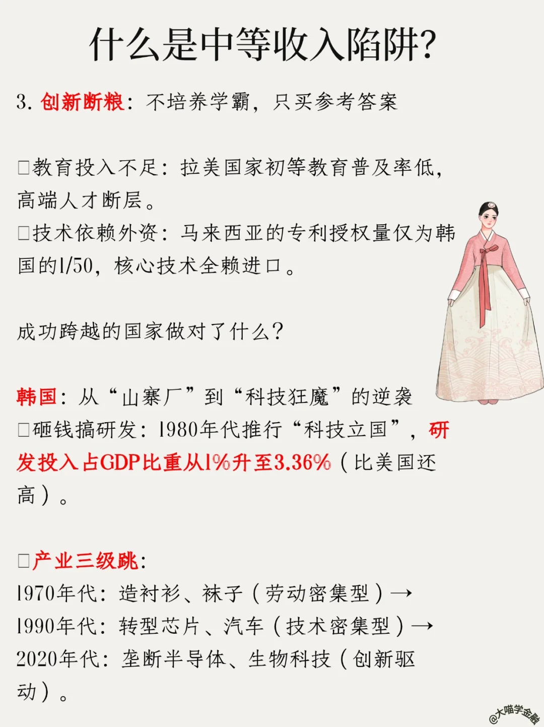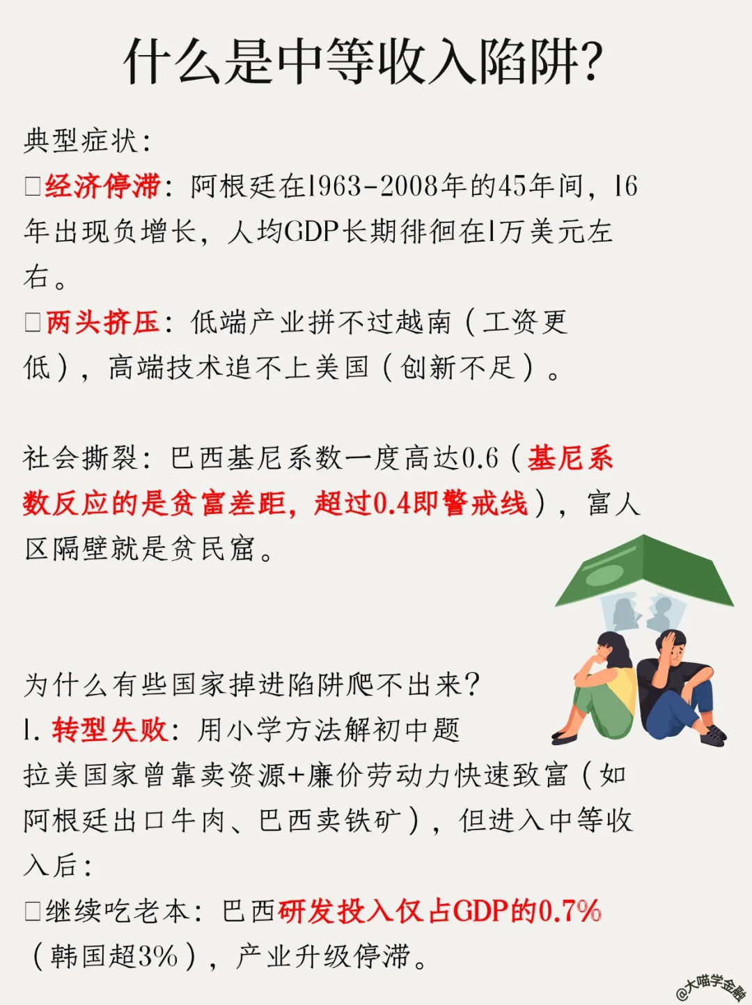 简单说:穷国靠廉价劳动力/卖资源冲到中等收入后,卡在中间上不去!