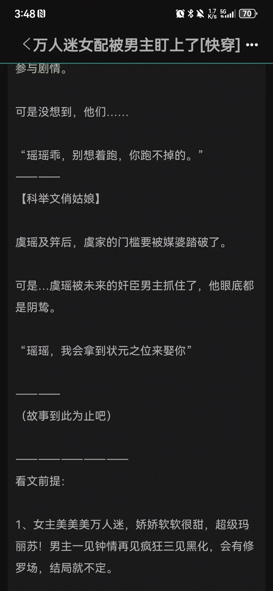 1️⃣女主美美美万人迷,娇娇软软很甜,超级玛丽苏!男主一见钟情再见疯狂三见黑化,会有修罗场,结局就不定。