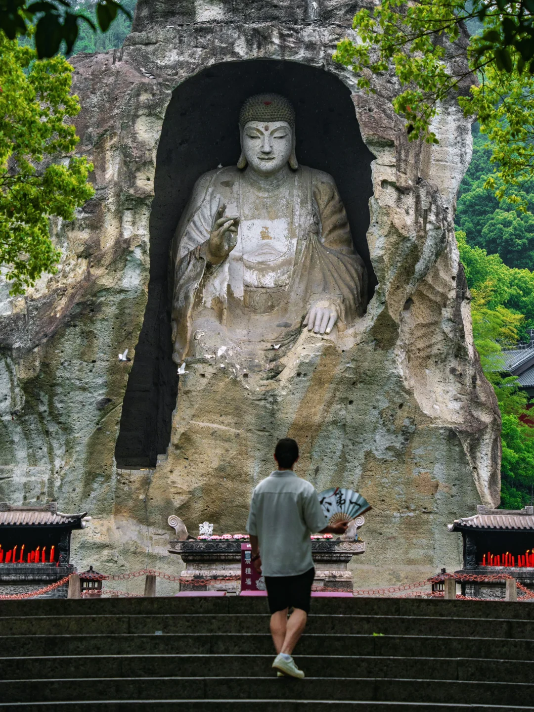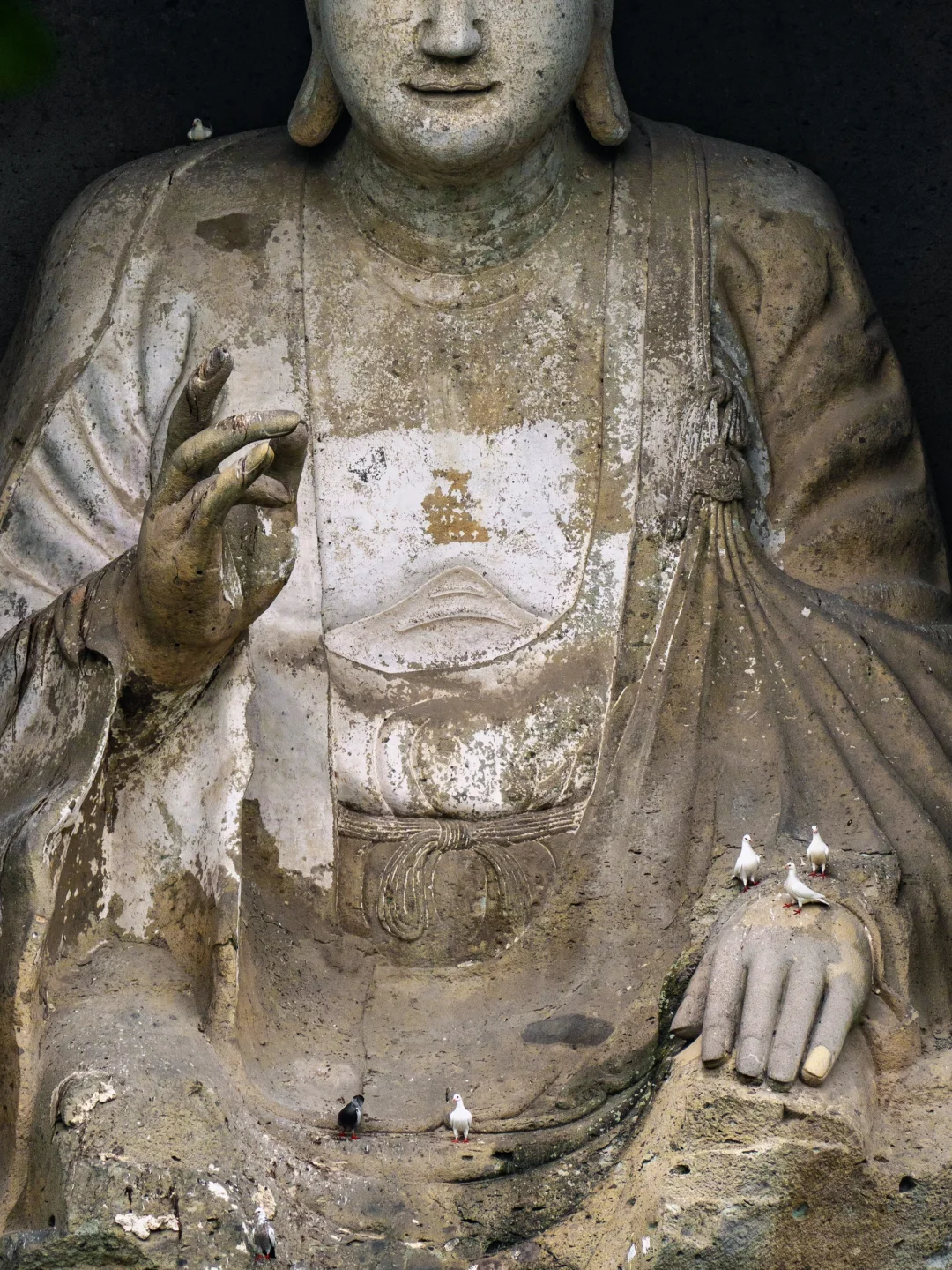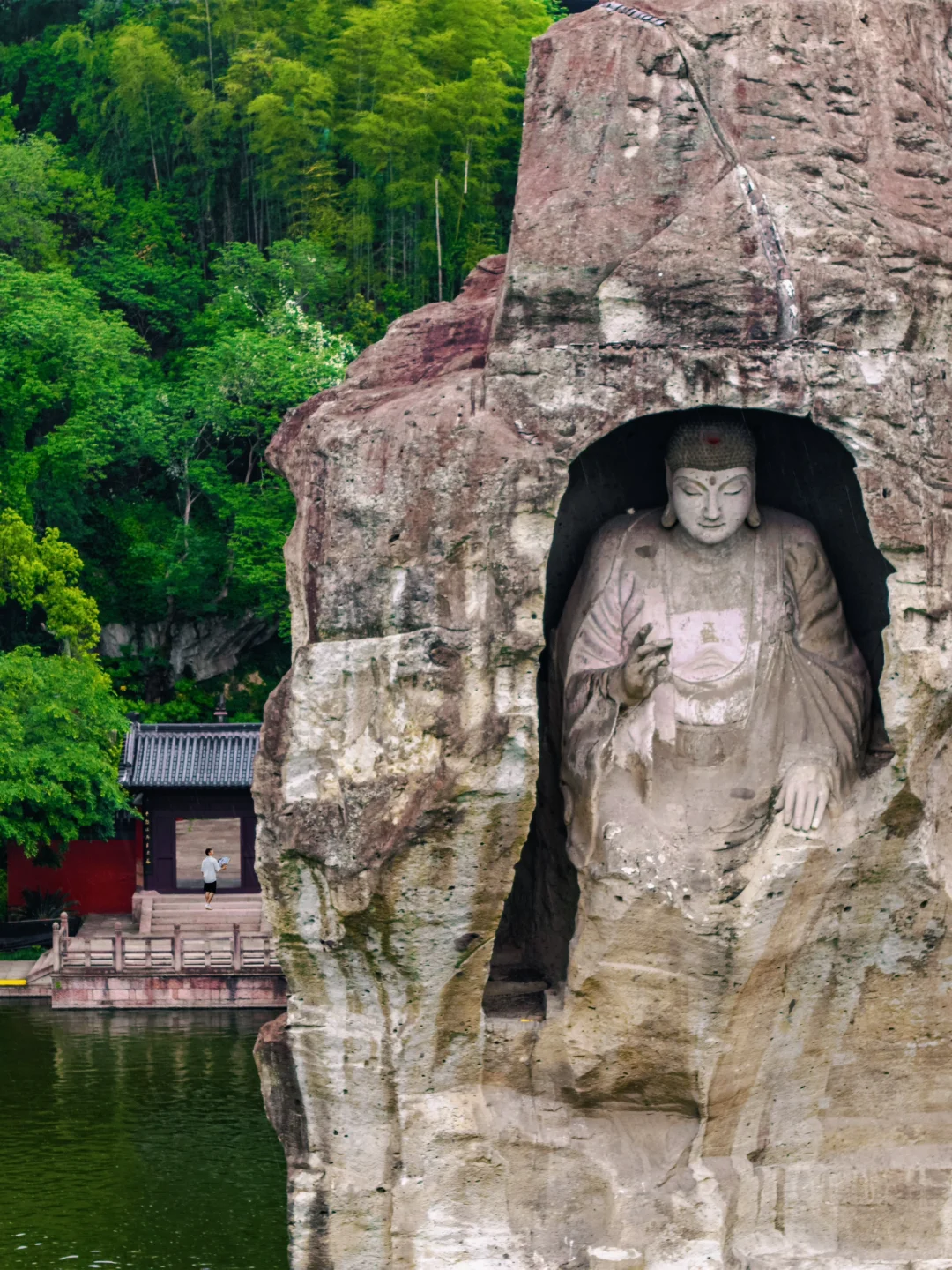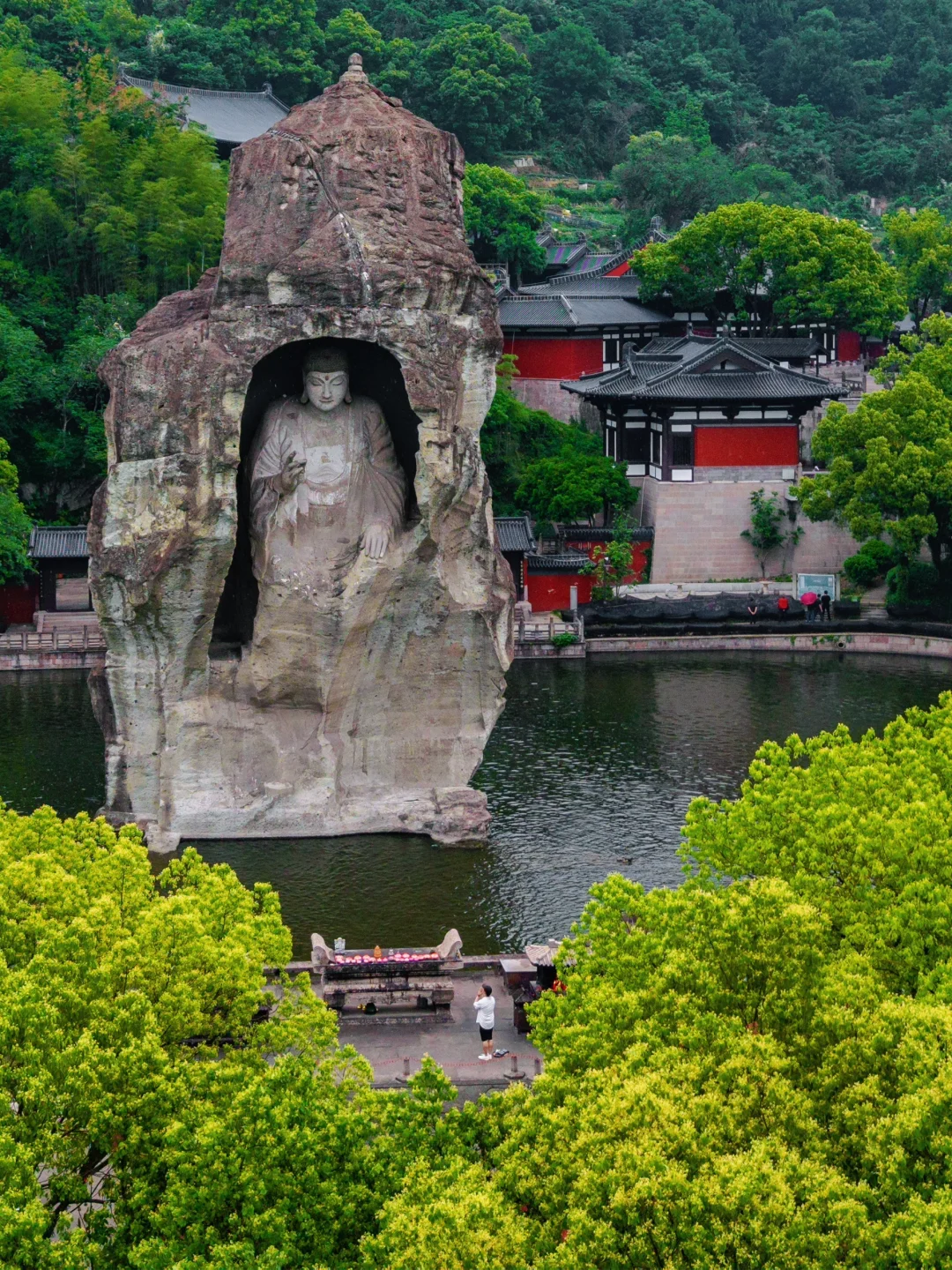 千百年来的开山采石让这里形成了姿态各异的石宕、石洞、石潭、石柱、石壁...其中后湖中央的石山又经雕琢出了佛像~