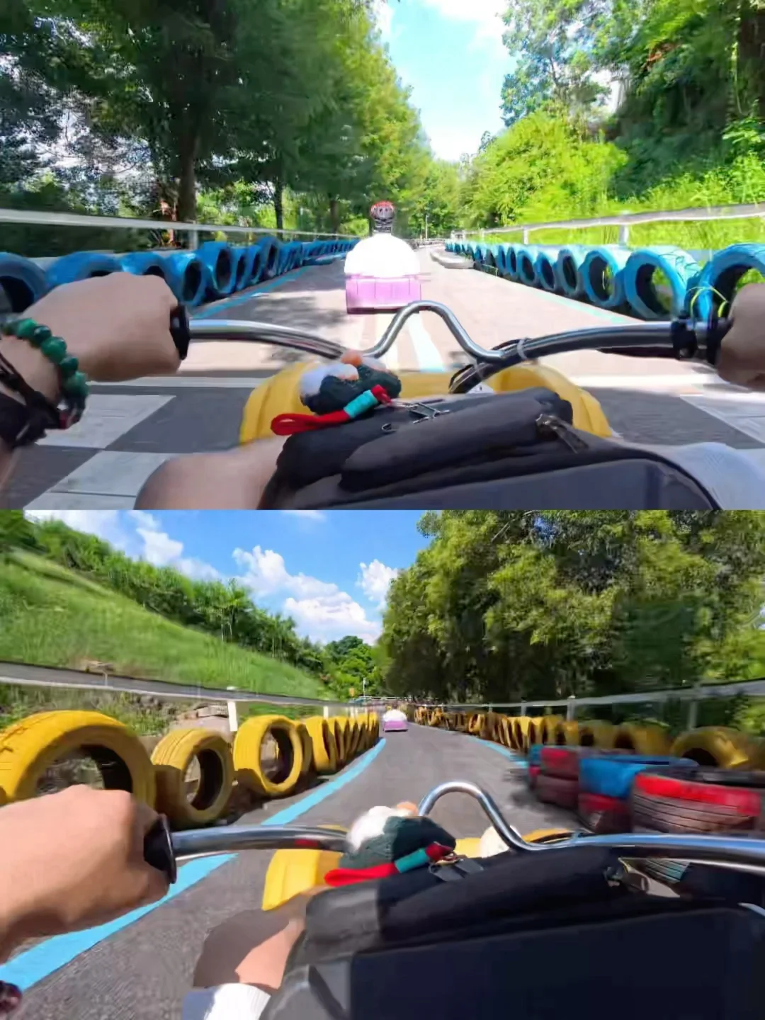 和朋友在山林里来一场速度与激情,路中这里设置了很多轮胎障碍,玩得挺好玩~