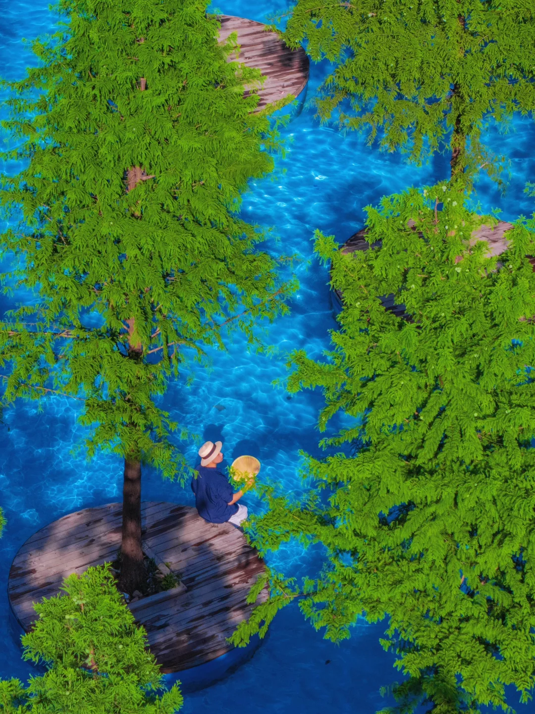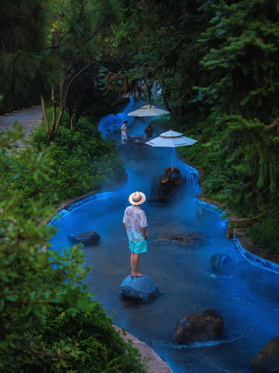 森林下玩水,溪水中吃西瓜,湖边喝咖啡…怎么拍都好好看,很有国外度假即视感,更能夜游~