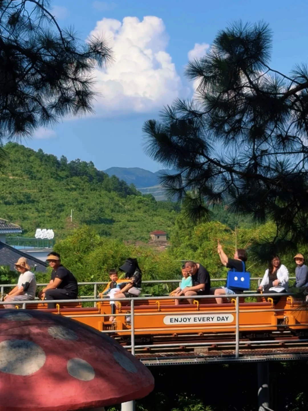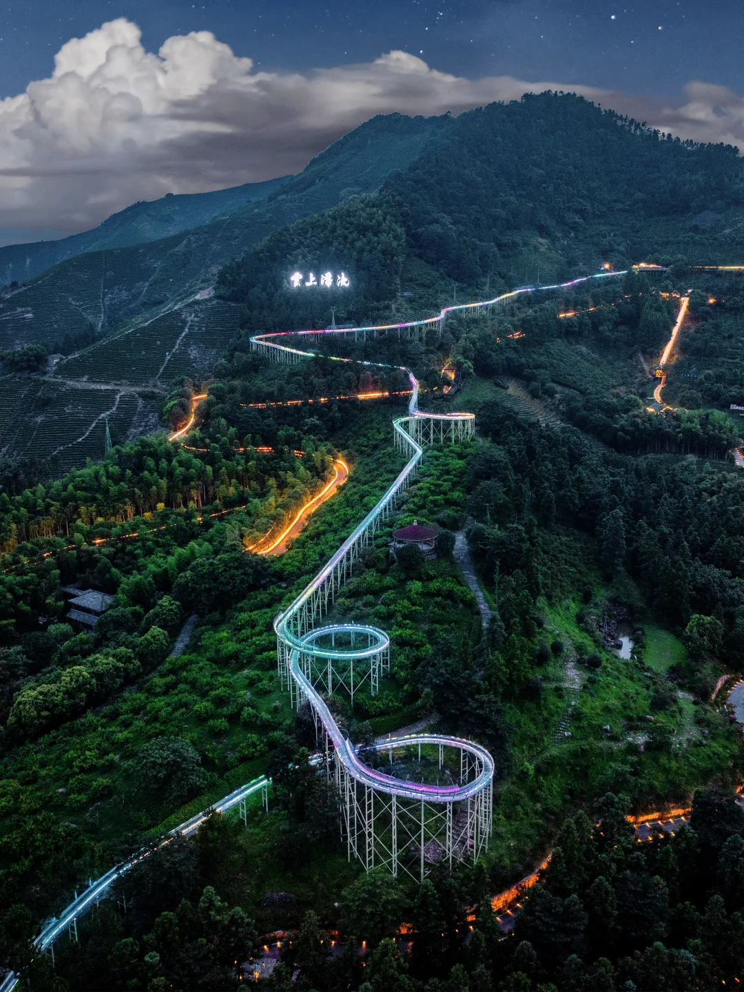 1800多米的超长玻璃水滑道,傍晚坐皮筏从山顶呼啸而下,水花溅起瞬间降温10℃~