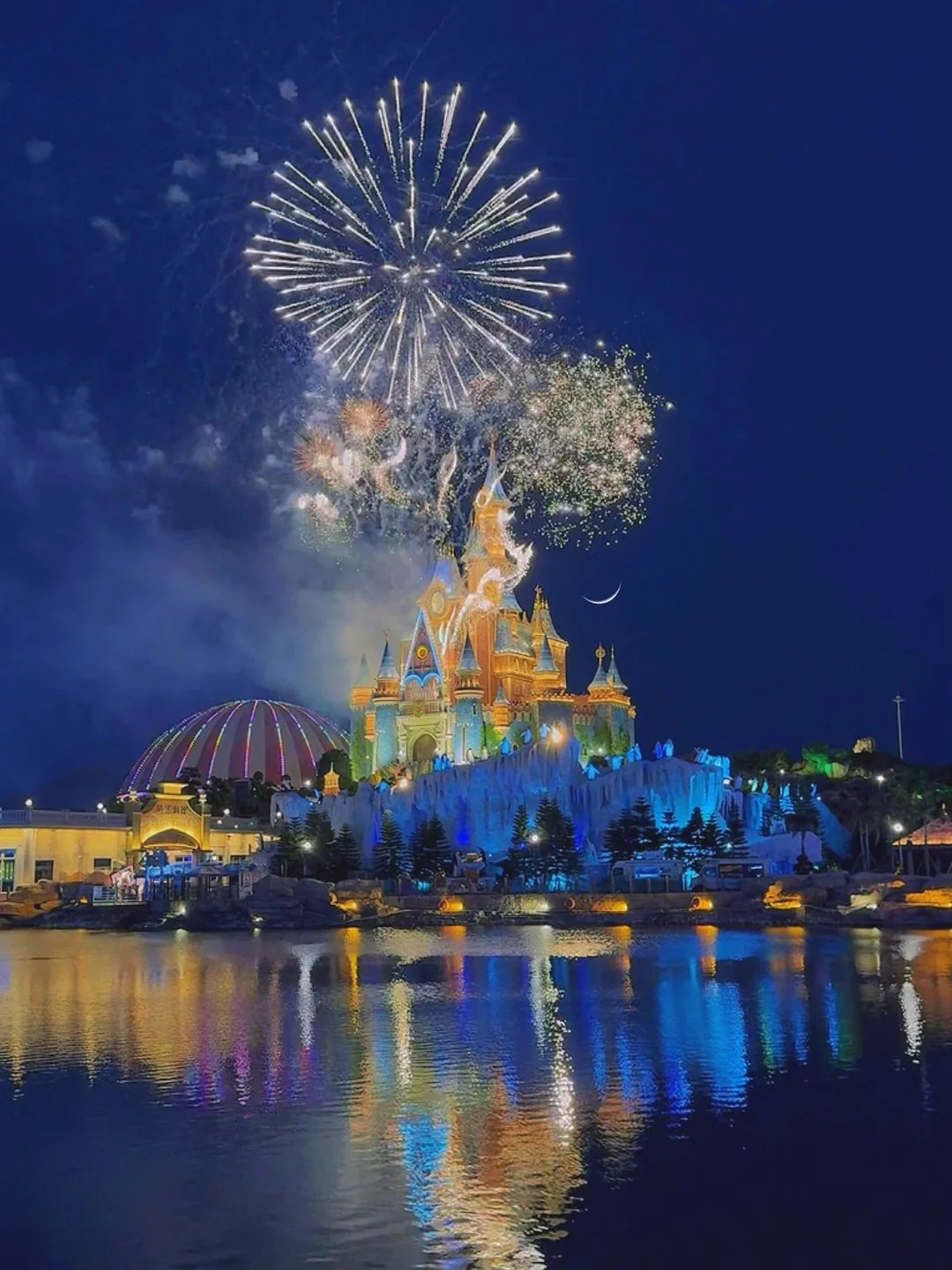 不用人挤人,在湖边看着烟花➕城堡➕湖面倒影,这一刻的感觉太美好~