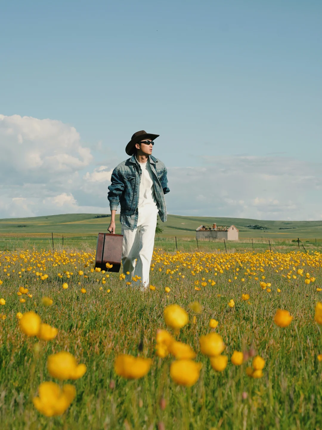 ✅穿搭:白/黄/红色长裙+牛仔帽+马丁靴,昼夜温差大带牛仔外套