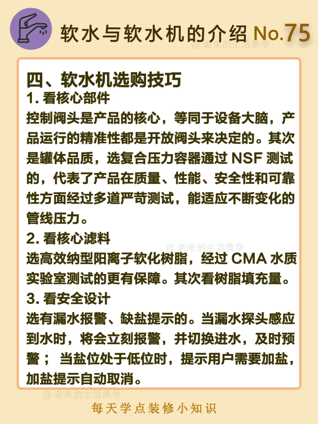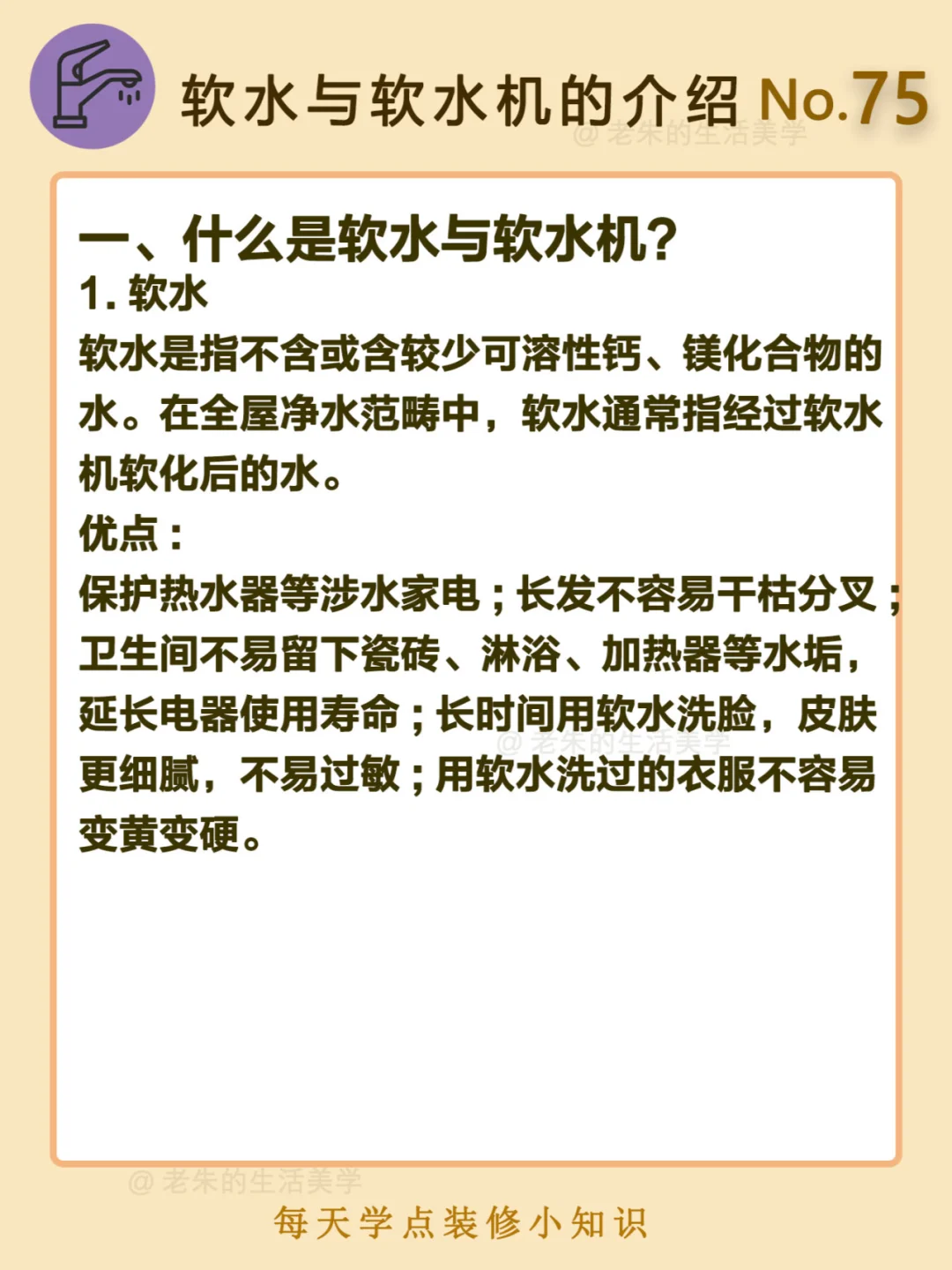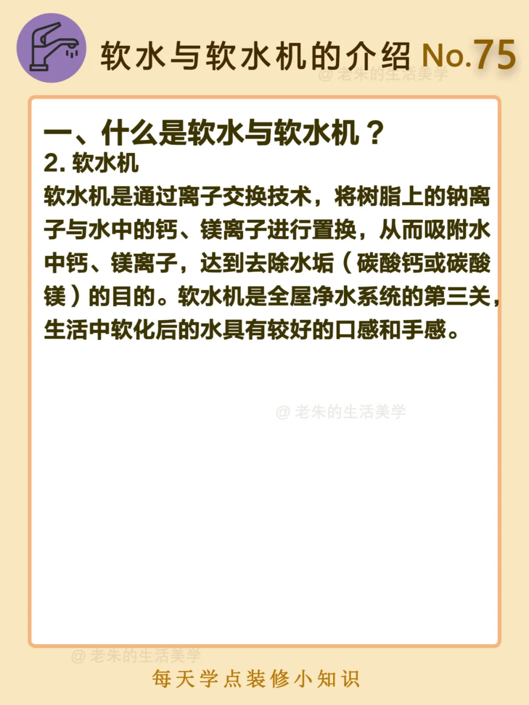 🔔 一、什么是软水与软水机? 二、软水机的工作原理 三、使用软水机需注意 四、软水机选购技巧 🔆 我是老朱 📍坐标天津 前上市公司金牌工长🏅 30年施工经验🛠️ 承接天津新房装修/老房改造 精心整理关于设计&施工&装修的攻略📝 关注我每日更新🗓️ 也可以在评论区留下您宝贵的想法与建议💓 让您装修不走弯路✅