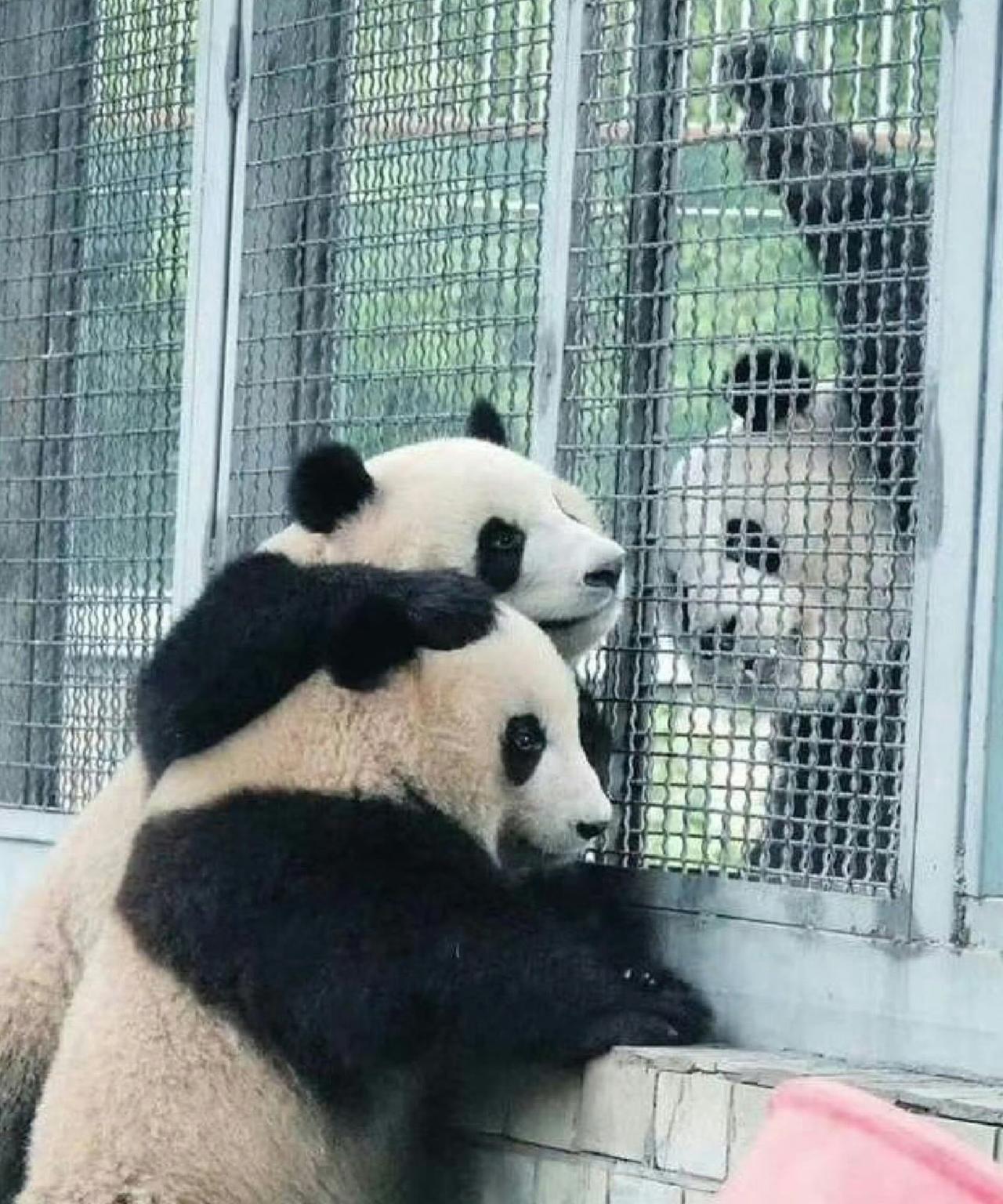 萌兰×萌宝×萌玉的同父同母三兄妹合体画面,看一次少一次了! 三个大头宝宝凑一块儿也太治愈了! 萌兰的标志性大脑袋不用多说,亲妹妹萌宝居然完美遗传,圆乎乎脑袋和哥哥像复制粘贴! 只有萌玉主打一个“差异化”,肉嘟嘟大屁股超抢镜,三小只各有各的萌点~ 姐妹花这次去中心参加繁育,大概率要分开住,以后这种同框名场面怕是见不到了… 虽然舍不得,但分开住能有更大活动空间也是好事,只希望三小只都能健康快乐长大,常被姨姨们云rua到! #晒图笔记大赛#