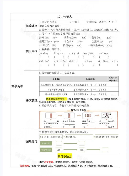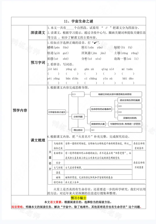 小学语文 六上语文 六上语文预习 学习任务单 六上语文第三单元 竹节人 宇宙生命之谜 故宫博物馆 鸭妮老师 学习资料