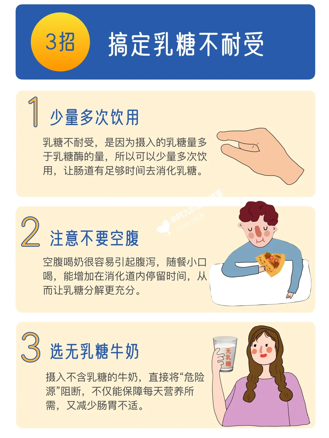 不要单独喝牛奶,随餐小口啜饮,这样有其他食物在胃里,能有效延缓胃排空时间,让肠道有更多时间分解乳糖。