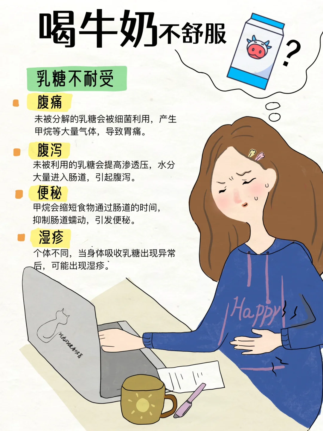 [向右R]恶心腹痛、腹泻拉肚子、便秘甚至发湿疹等情况,每次喝牛奶就感觉不舒服,喝瓶牛奶怎么还遭这罪!