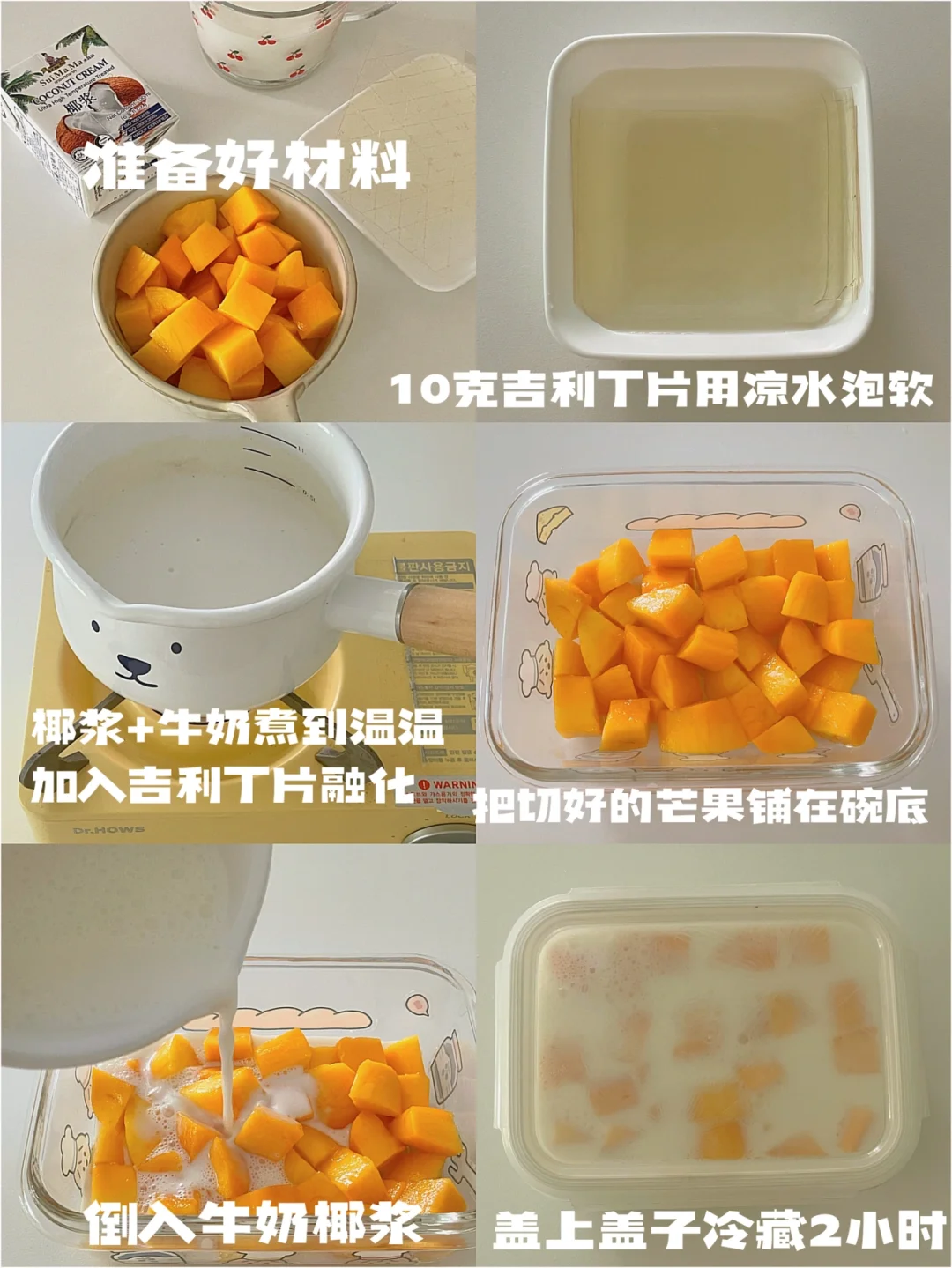 吉利丁片10克|250ml牛奶|50ml椰浆|小台芒