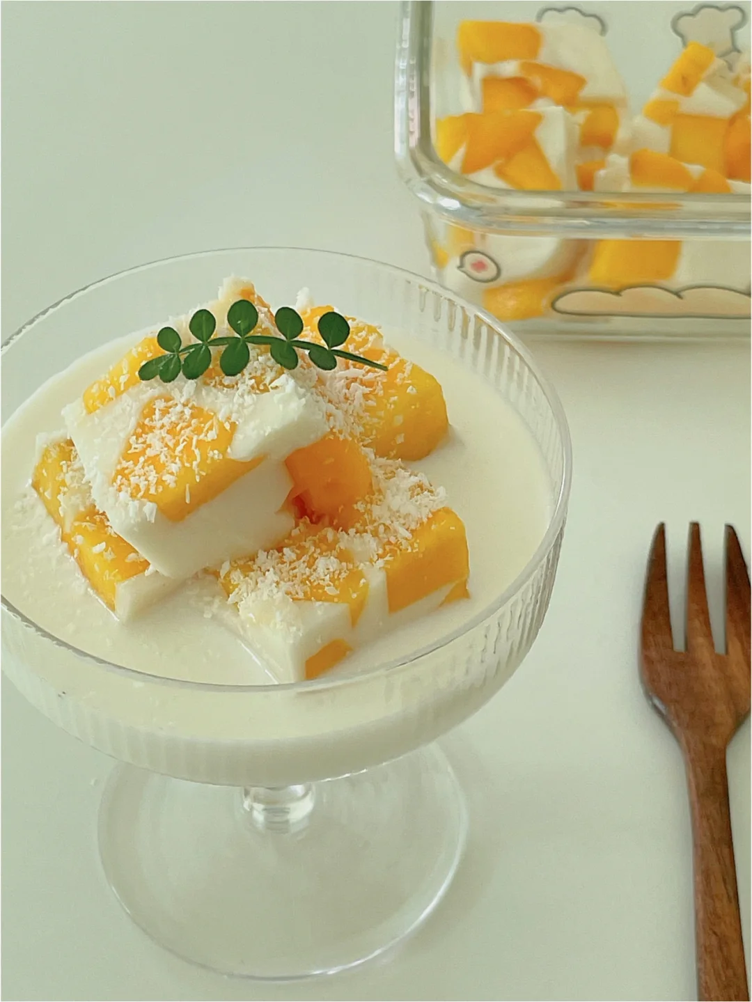 芒果牛奶椰子冻🥥|有手就会的低卡小甜品🥭