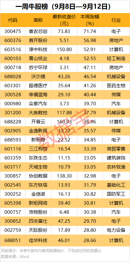 一周牛熊股出炉:4股累计涨幅均超52%