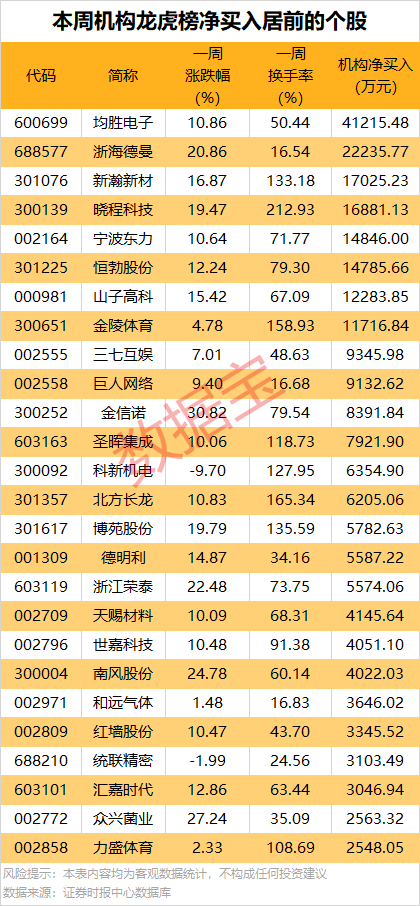 一周龙虎榜:8股获机构大手笔净买入