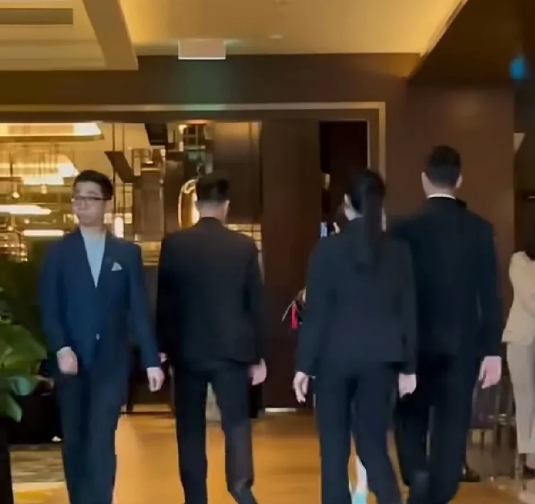澳门主办方给莎莎的排面够大了!莎莎去健身房锻炼回酒店,身后跟着4个安保人员,三个男的一个女的!