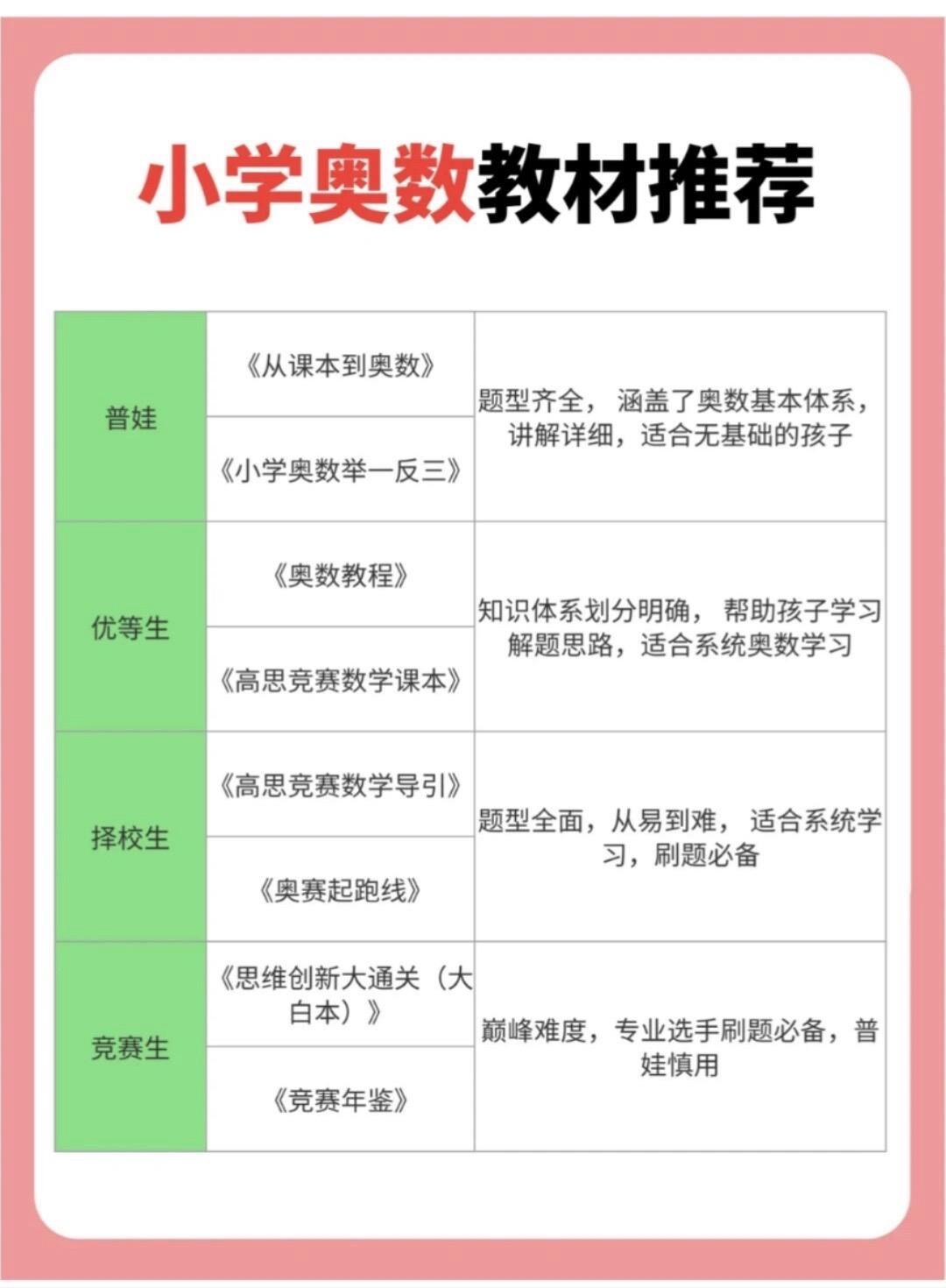 小学数学奥数书籍推荐及架构图。