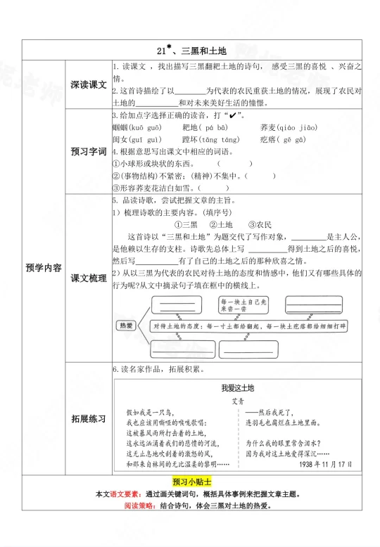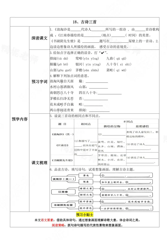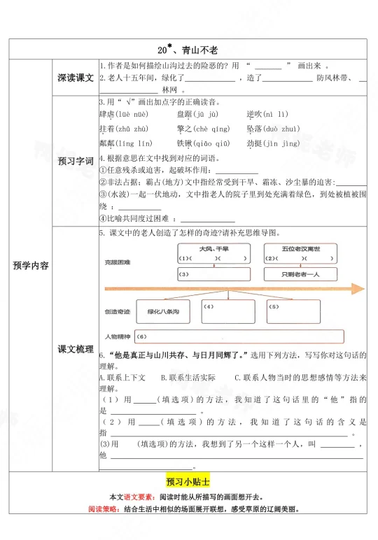 小学语文 预习笔记 六上语文 六上语文预习 高效学习 语文预习 预习单 学习单 六上语文第六单元