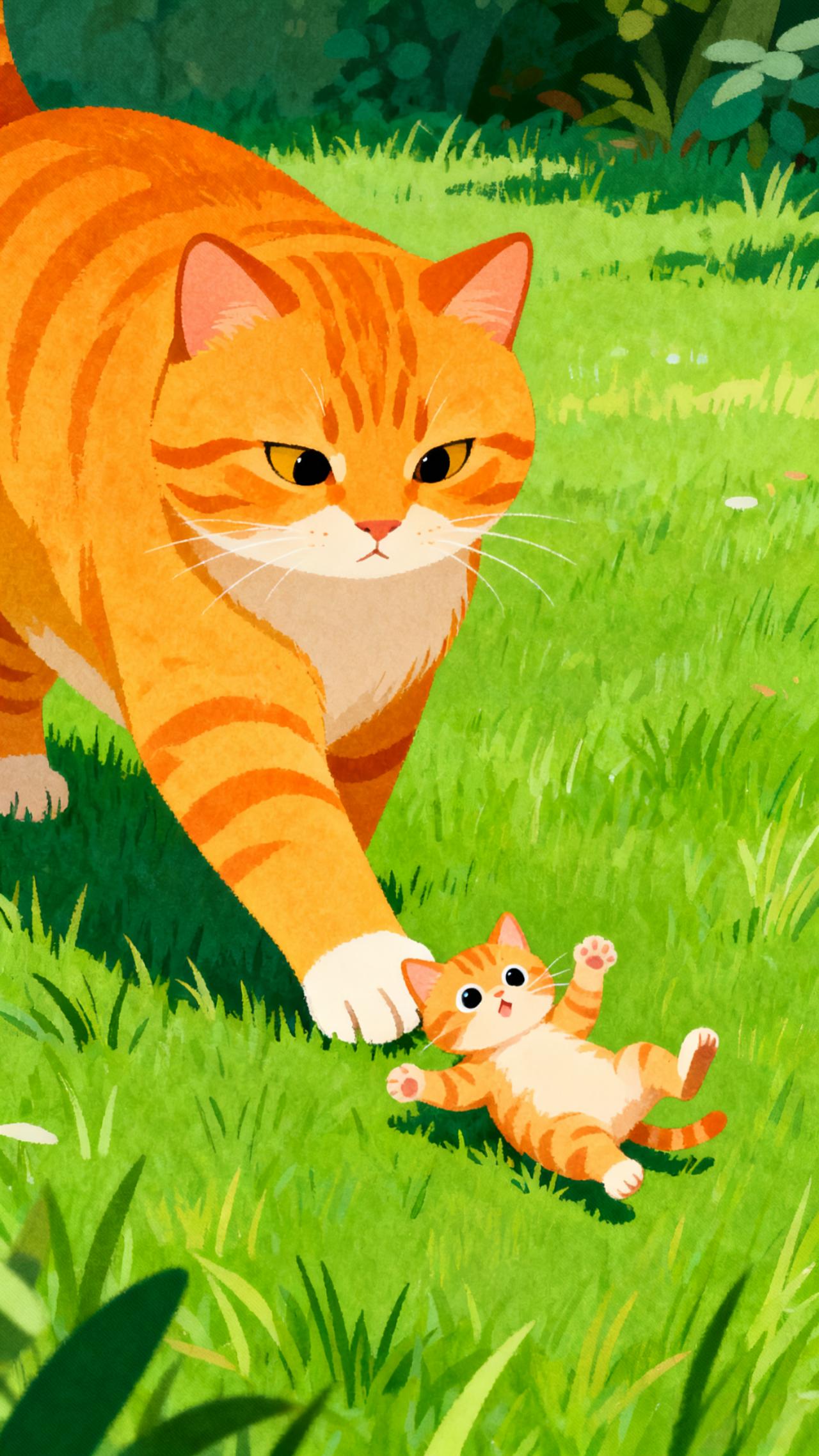 周末,大橘猫带着第一次出门的小橘猫逛景区。小橘猫对一切都充满好奇,不知不觉松开大橘的手,撒欢跑向一片绿油油的草坪,还在上面打了好几个滚,开心地感叹“好舒服”! 大橘猫连忙赶过来,轻声叫起小橘猫,温柔提醒:“景区里不能随意踩踏花草树木,这么美的草坪要好好爱护,咱们得文明旅游呀。”小橘猫认真点头:“记住啦!以后我一定做到!”