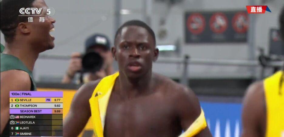 牙买加短跑重回巅峰!世锦赛男子100米决赛,牙买加选手塞维尔9秒77夺冠,另一位