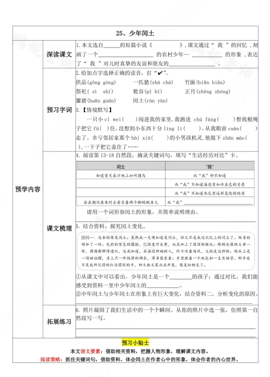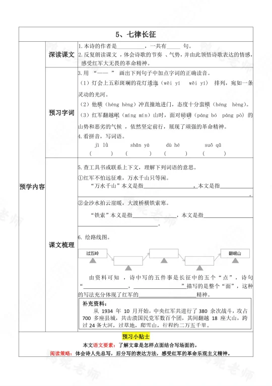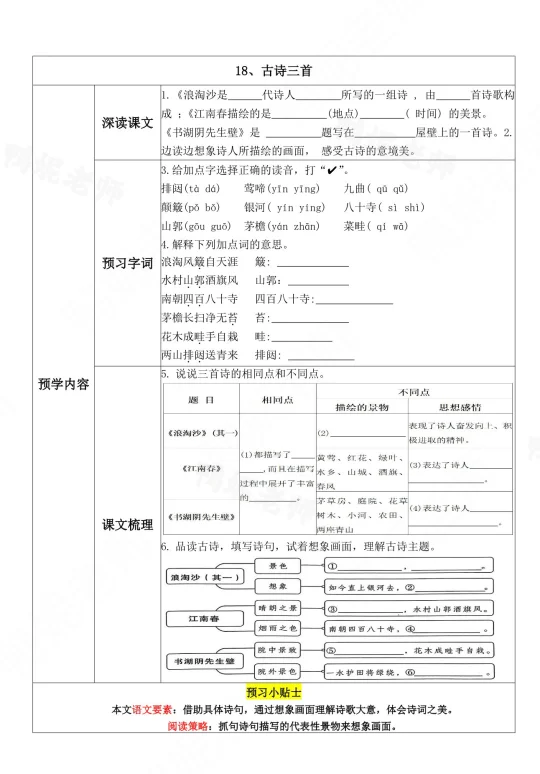 🍃根据咱们班娃自身的实际情况整理的这个学期的预习任务单👇