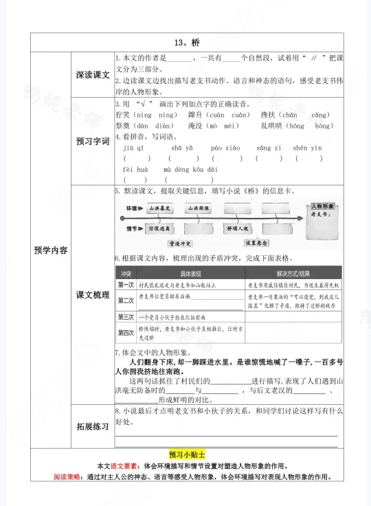 3️⃣课文梳理,通过图表和思维导图的方式理清课文脉络;