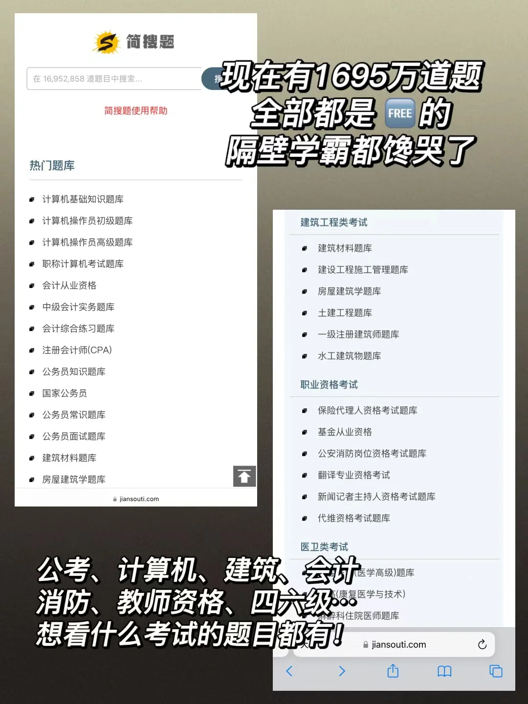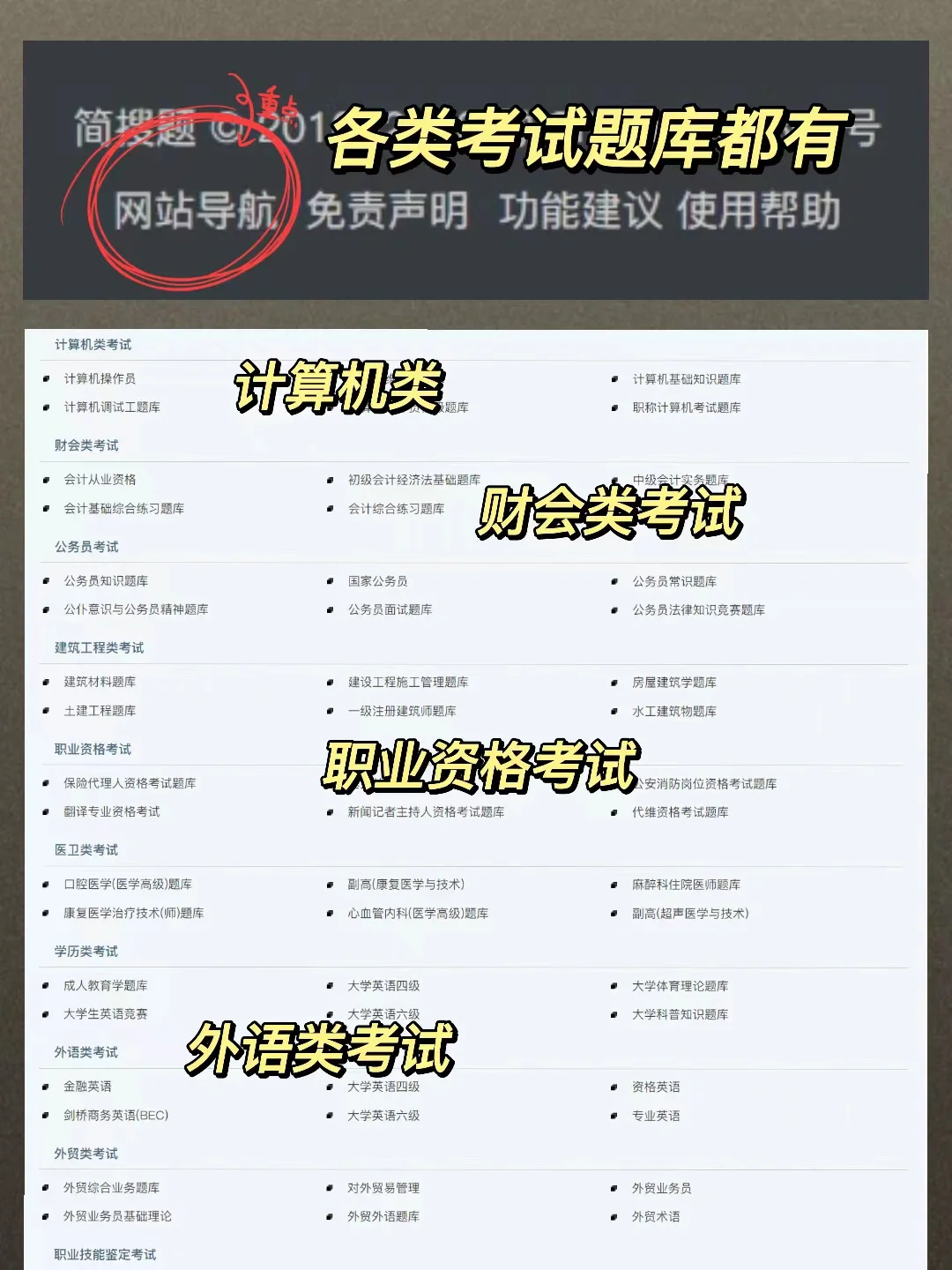 [蓝色心形R]像是公考、计算机、建筑、会计、消防、教师资格、四六级…基本你能想到的考试题目都可以在这里找,学霸看到都馋哭了[赞R]