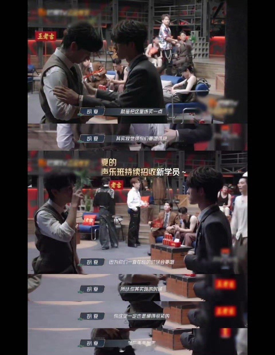 苏新皓胡夏贴贴求学苏新皓这波迷弟操作太可爱!听完胡夏开嗓就凑过去贴贴,夸完还急着问唱歌技巧,胡夏耐心听他提问的样子超温柔,一贴一教的互动,治愈感拉满!