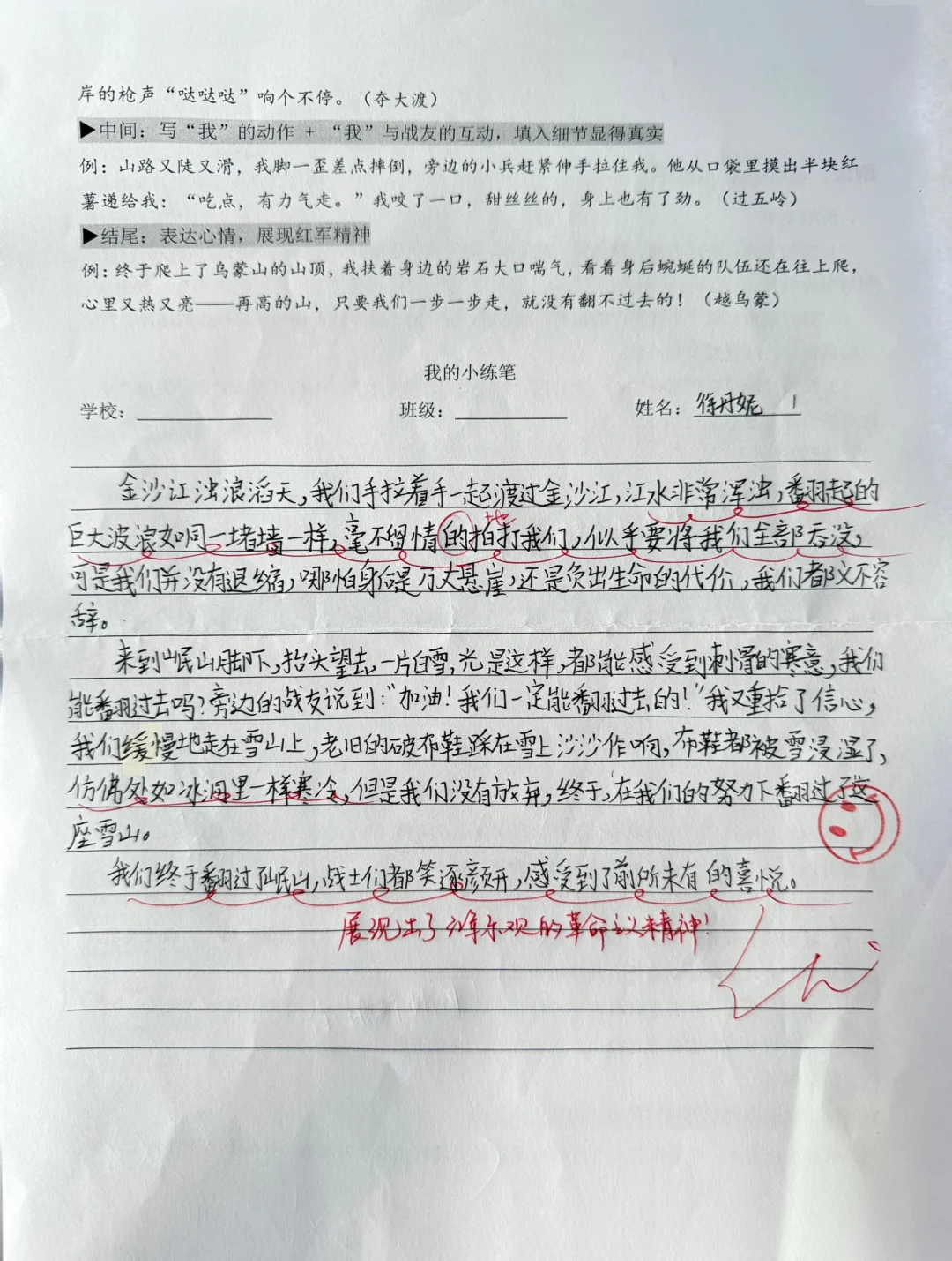 🍃娃们挺让我惊喜的!原本想着这一段革命岁月离他们太遥远,他们很难体会到长征的“远征难”和大无畏的革命主义精神,我原想他们可能写不太出来!但是我错了!