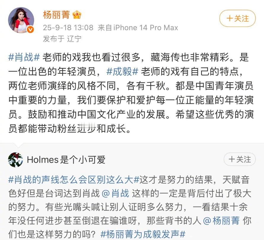 提到肖战和成毅,杨丽菁作出评价,称两人各有千秋,这份认可让两位艺人的不同特质更受