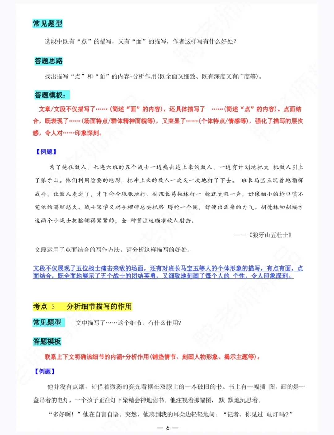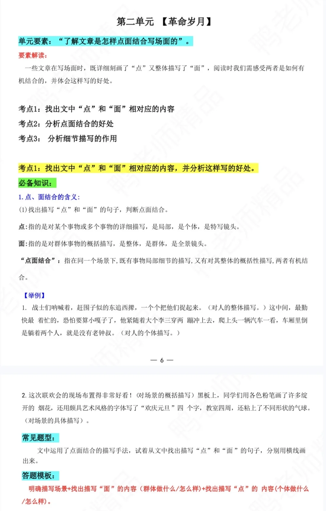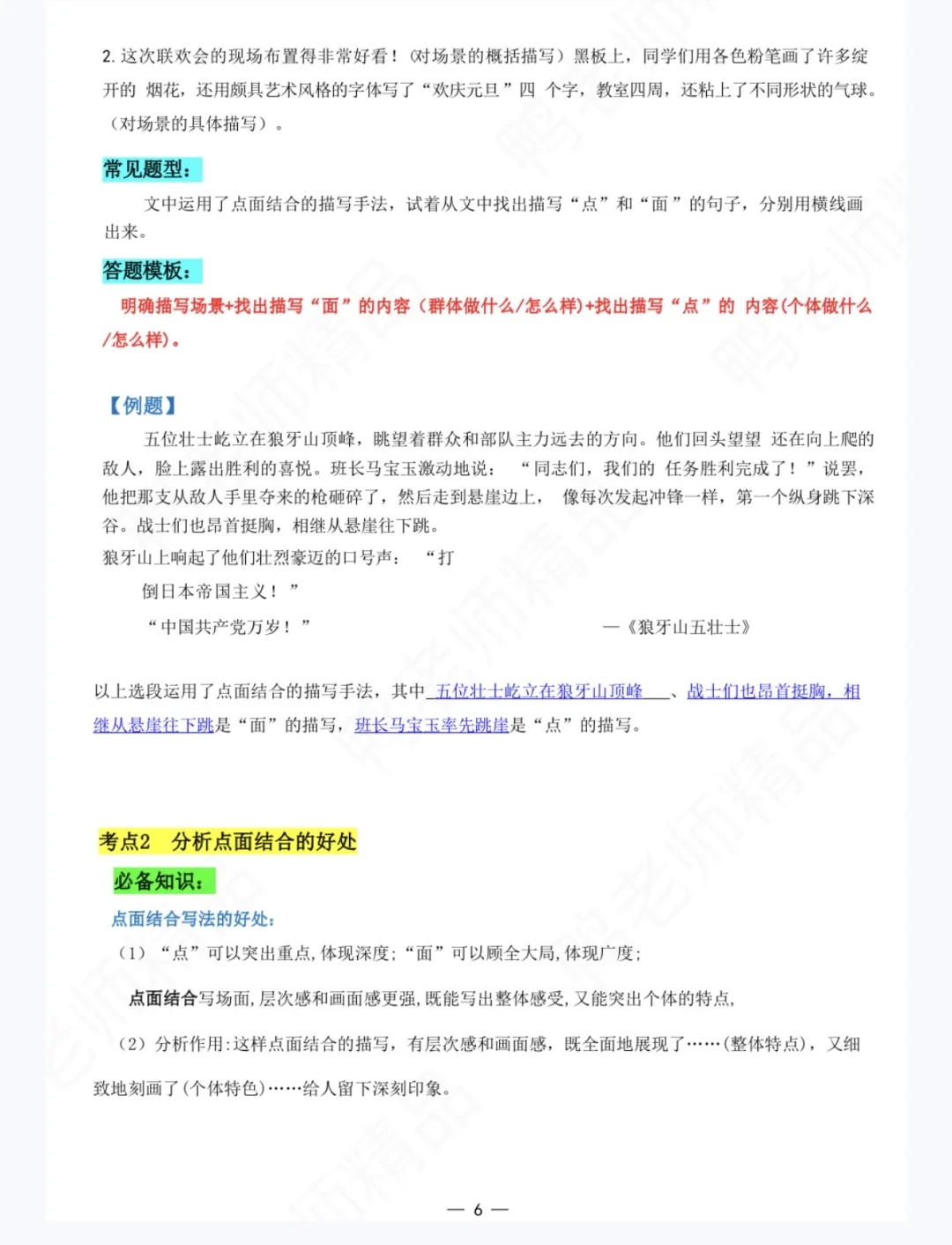 点面结合 点面结合写场面 小学六年级语文点面结合 侧面描写 语文阅读理解答题技巧 语文阅读理解万能公式 六年级上册第二单元