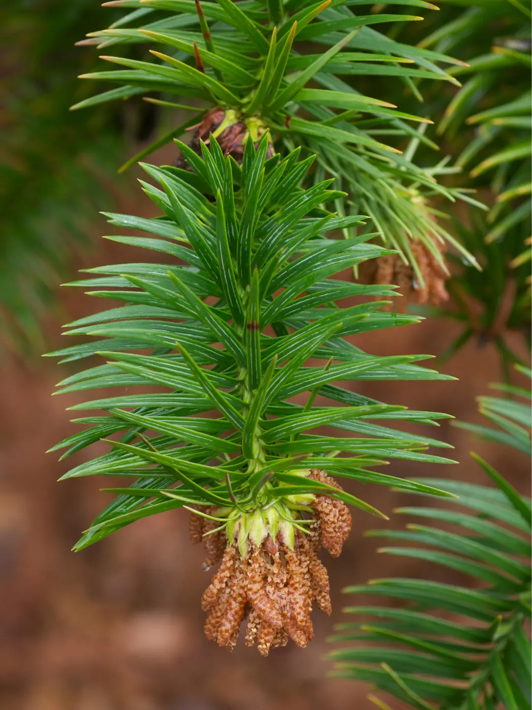 重庆老百姓口中的“沙树”,就是杉木。它跟马尾松一样,也是植树造林种常用的树种。杉木生长快、适应性强、树干笔直,杉木纹理通直细密,不像柏木那么多结疤,不像松木那样柔软易开裂,因为性质优良,甚至使它能用于制作传统乐器–古琴。杉树的种子传播机制和马尾松类似,不过杉木的果实也有自己的特色,它的鳞片薄而且有光泽,顶端还带着一个微微凸起的尖,当一个球果张开时,很像一个用古铜打造的玫瑰。