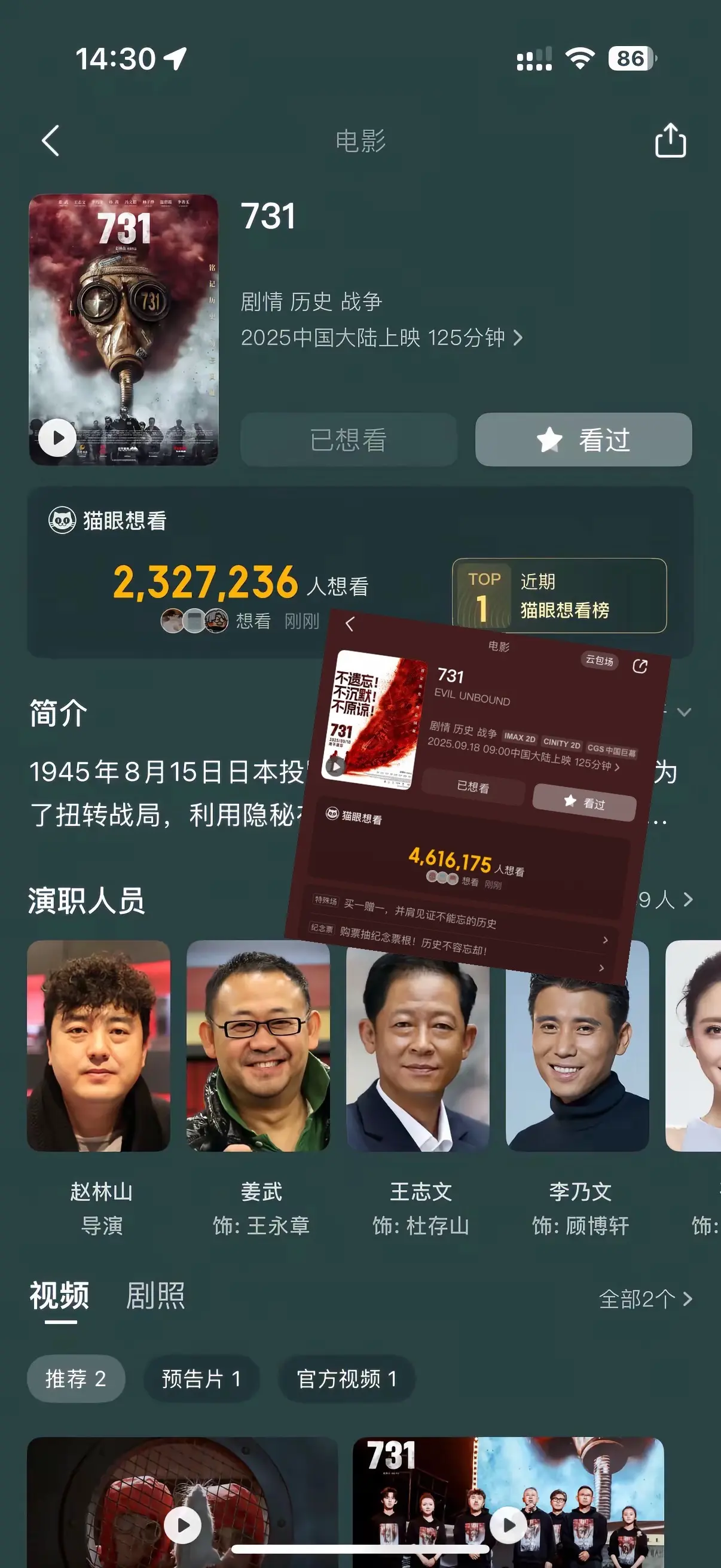 今天和全家第一次一起观看了让我期待已久的电影 可能也是由于删减的原因 确实没有想象中有看头 但是呢 无论如何这部电影会让我们更加坚定了爱国信念 它是值得的 有关家国仇恨 好坏我都必须看不后悔!有幸在今年2月20日去了哈尔滨的侵华日军第七三一部队遗址 亲眼看见了历史的痕迹 让我更加珍惜当下拥有的一切 可能我们现在的生活有时候也过的水深火热 但是跟先烈们比都不算什么 我知道每个国家 每个地区都有好人坏人 可是我从小就是“讨厌”那个国家 永远不会打心底“喜欢” (当然这是我个人行为哈哈 以前的先辈们太苦了 我们这一代人算是幸福的 一切的一切都是为了告诉我们 要铭记历史 事实就是事实 勿忘国耻 吾辈当自强。电影731