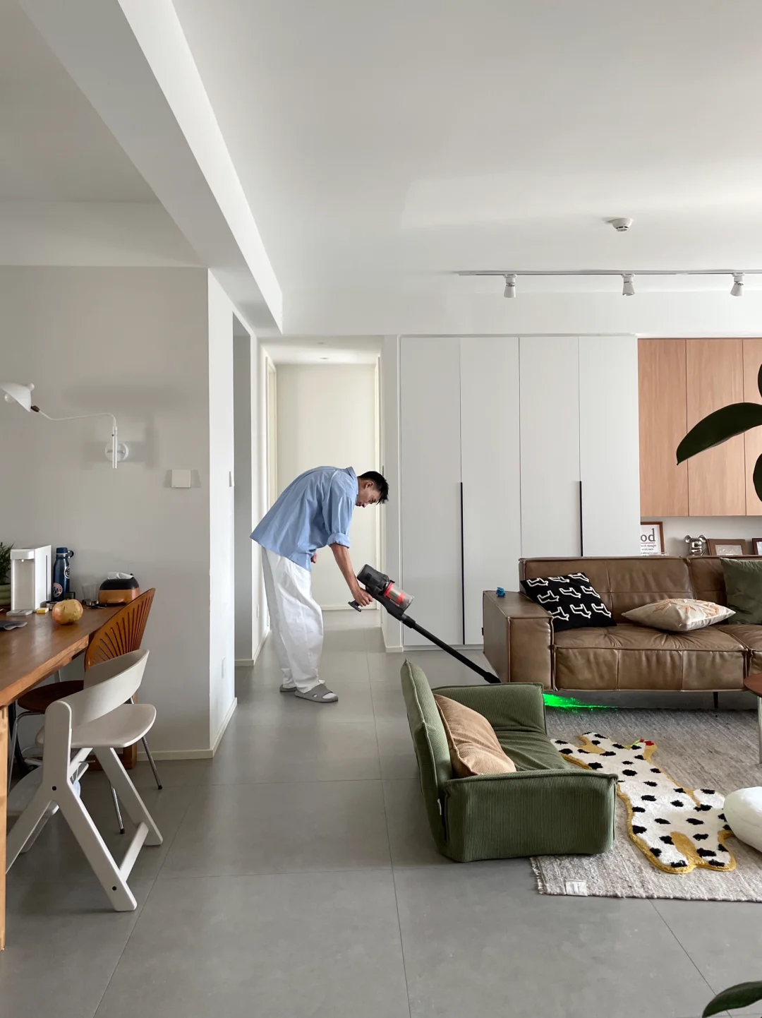 北方到了秋冬灰尘特别大,平时开窗通风一天,看着干干净净的家,其实地板上全是灰尘!每次以为打扫干净了,直到我用了德尔玛t30,用绿光一照还是有很多灰尘!所以北方每家每户有一台吸尘器是很有必要的
